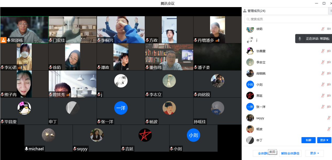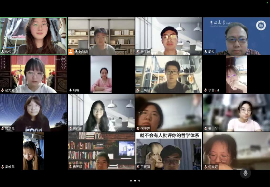 3月29日晚,2020级二班的各位同学与刘畅、张力伟两位班主任老师再聚线上,举办第三期抗疫主题班会。在班会上,同学们分享了近期的学习生活状况。刘畅老师对同学们在疫情期间展现出的自律、自觉与成熟感到欣慰,并讲述了自己最近遇见与回忆起的一些故事,分享了许多感触。她寄语同学们在疫情封寝这段共患难的时光里珍惜同学缘分,收获友谊与幸福。张力伟老师也分享了自己在本科期间学习生活与参加学生工作的一些故事与经历,并为同学们未来的发展规划给予了一些经验与指导。他希望同学们珍惜现在这段时光,认真做好未来规划,在沟通互动中不断提升自我,收获珍贵的经验、资源与情谊。