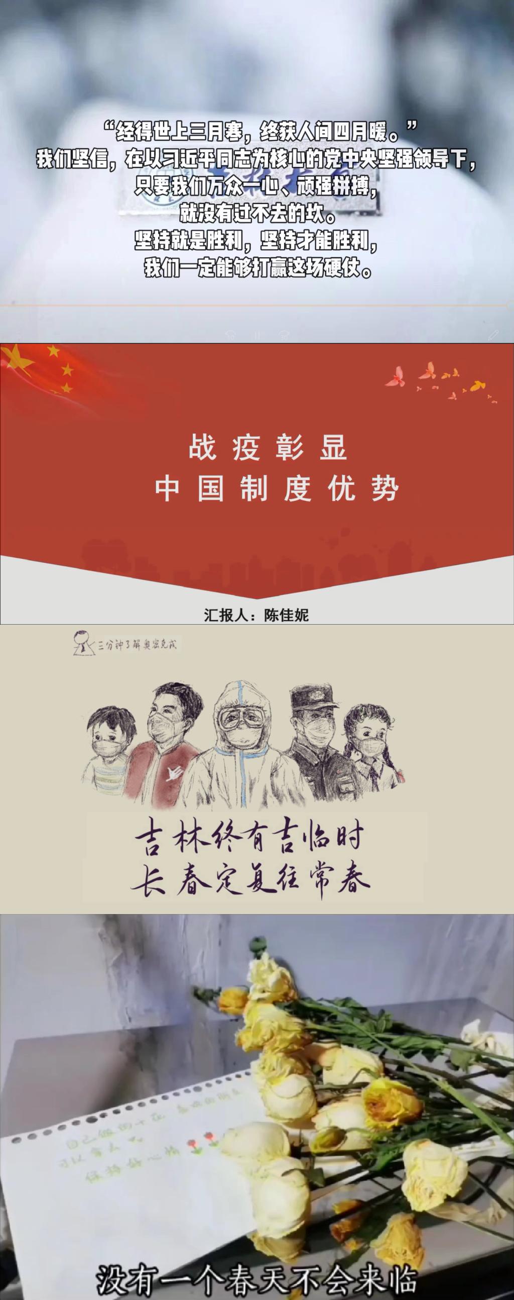 本次防疫思政微视频立项工作不仅激发了同学们的创作热情,还展示了同心偕行、乐观抗疫的青春精神,激励行政学子以更加饱满精神投身到专业学习与校园疫情防控工作中去。足音铿锵奋力行,春光不负赶路人。我们也始终相信,长春疫情防控保卫战必将取得决战决胜阶段的最终胜利!(文:麻豆