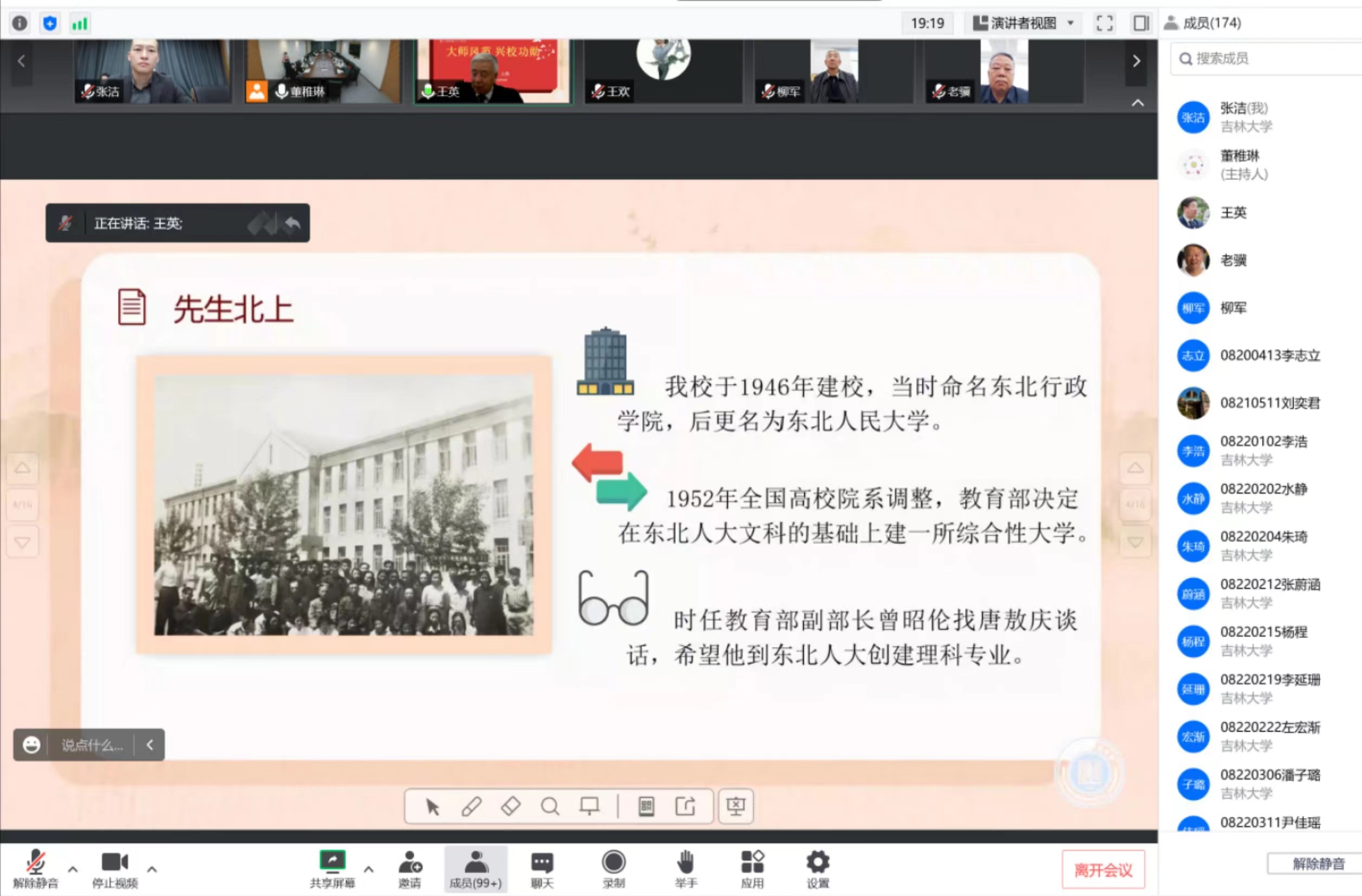 王英以《大师风范 兴校功勋》为题,结合个人多年来的工作经历进行讲授,生动再现了我国现代理论化学研究的开拓者和奠基人、“中国量子化学之父——唐敖庆老校长的生平事迹,从“筚路蓝缕创科建系”“桃李不言下自成蹊”“科研攻关登峰造极”“办学治校凝心聚力”等四个方面,讲述了老一辈教育家积极响应党和国家号召,在艰苦岁月克服重重困难开疆拓土、建功立业的感人故事,展示了唐敖庆老先生在麻豆