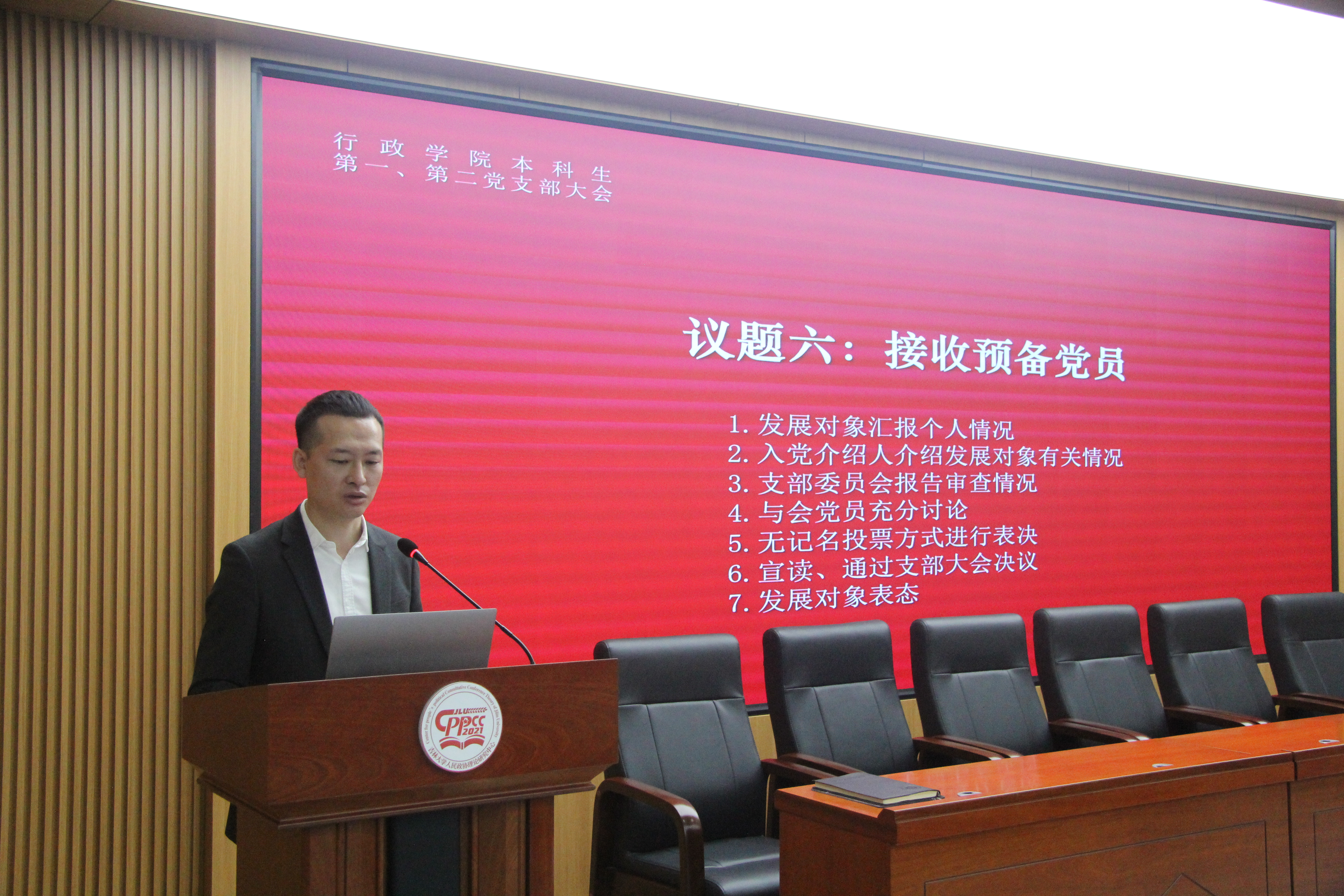大会传达了学院党委关于调整本科生党支部设置、指派本科生党支部负责人等有关决议。会后,本科生第一党支部书记高卓嫱、本科生第二党支部书记谷瑛淏分别组织党支部召开党员大会、讨论接收预备党员。张洁以普通党员身份参加了本科生第二党支部党员大会。