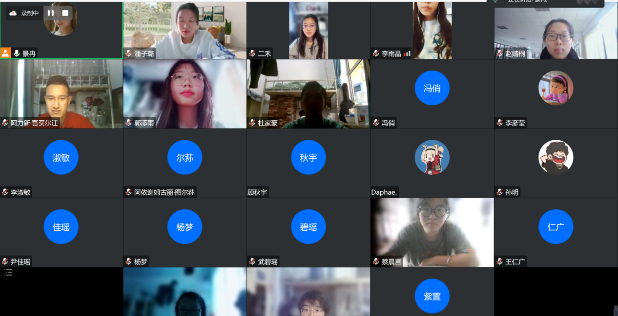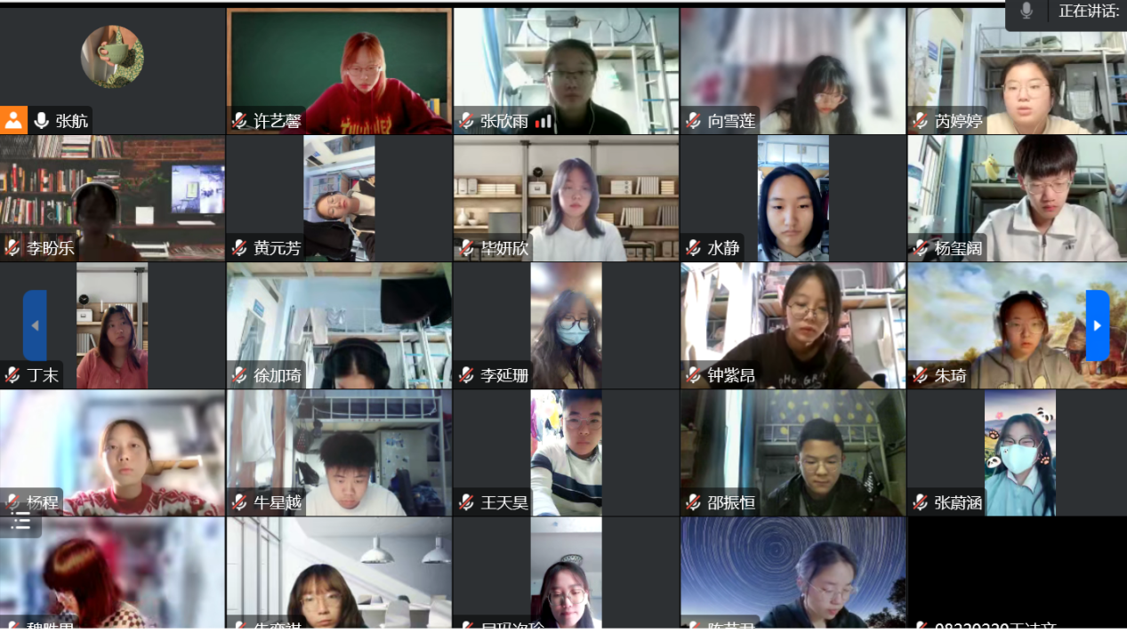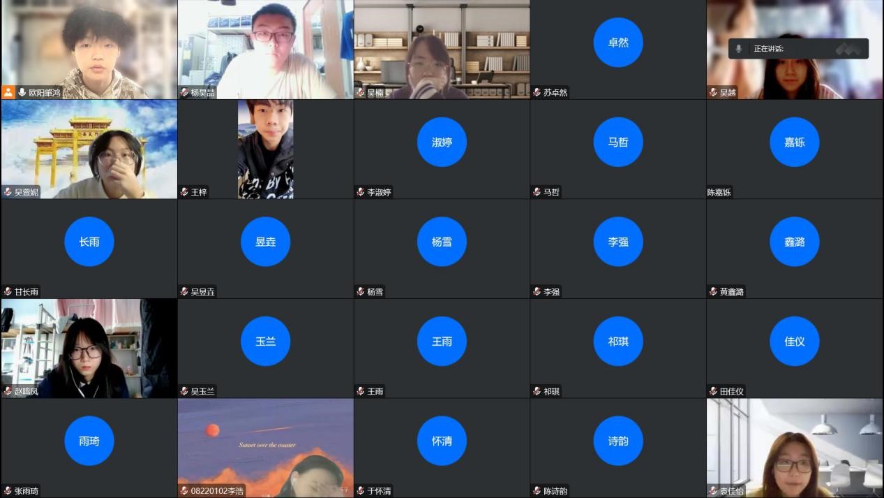 本次线上主题团课分为三部分:学习解读、讨论环节、总结环节。首先,各班辅导员助理对习近平总书记的重要讲话精神进行了解读。欧阳肇鸿(2020级本科生)对学习主题进行讲解归纳,分享了他对《习近平与大学生朋友们》内容的理解;景冉(2020级本科生)带领同学们详细解读讲话金句,让同学们体悟到“爱国、励志、求真、力行”的深刻内涵。习近平总书记的八字箴言蕴含了党和国家对青年的殷切希望,也为广大青年学子指明了奋斗的方向。