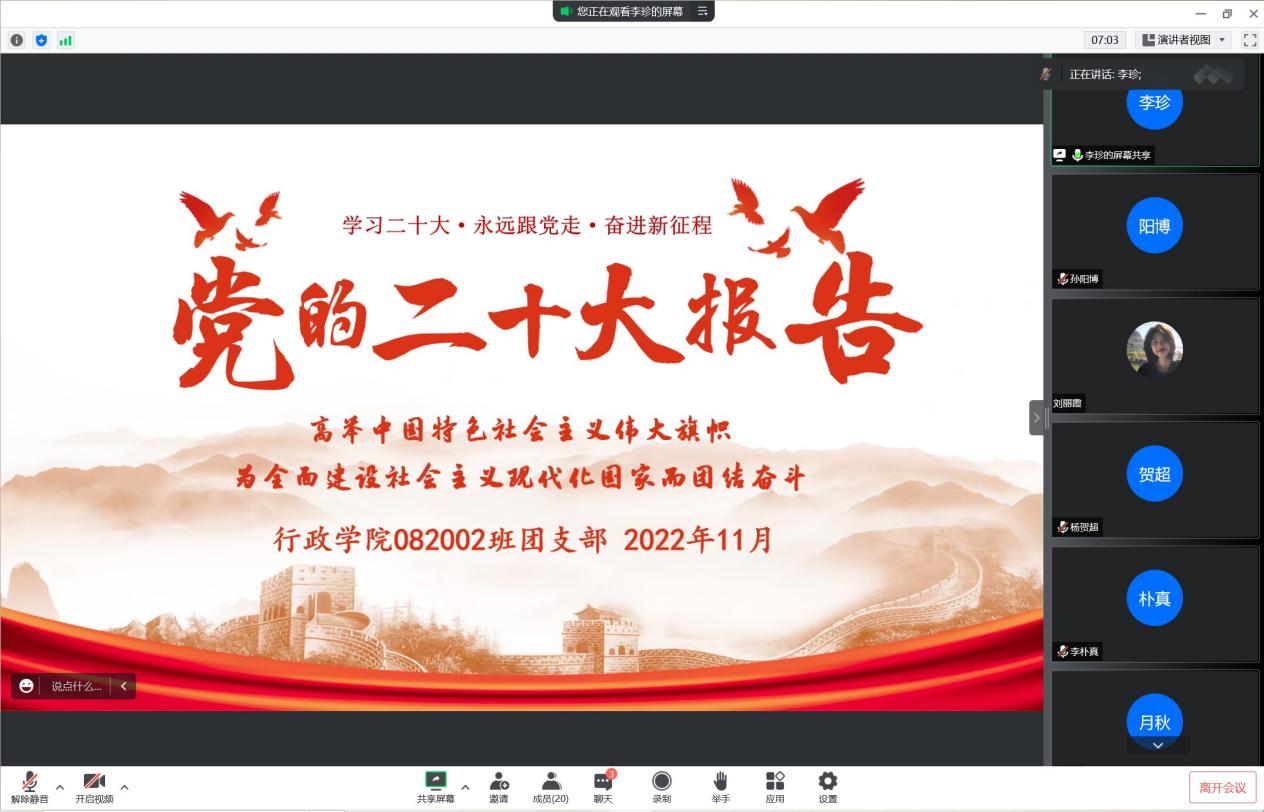 通过本次线上团日活动,同学们深刻领悟到了习近平总书记关于高举中国特色社会主义伟大旗帜,为全面建设社会主义现代化国家而团结奋斗为主题的二十大报告精神。相信通过本次团日活动,行政学子将继续砥砺前行,赓续传承麻豆