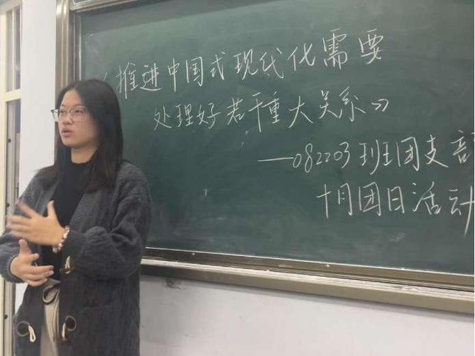2022级各班团支部在10月开展“学习习近平总书记重要文章《推进中国式现代化需要处理好若干重大关系》”主题团日活动。本次团日活动分为案例讲述、内容解读、学习交流三个环节。