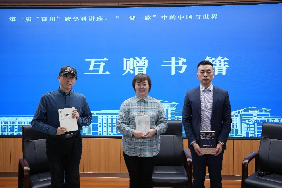 在互动环节,在场学生就国际传播人才培养、话语与权力关系、中国的未来发展等问题与老师们进行了交流讨论,三位老师以自身的钻研精神、专业品质和学术追求,为与会同学们带来了一场精彩的学术盛宴。随后,三位老师就各自研究领域挑选书籍相互赠送,以示各学院之间友好交流、携手并进、共话发展。