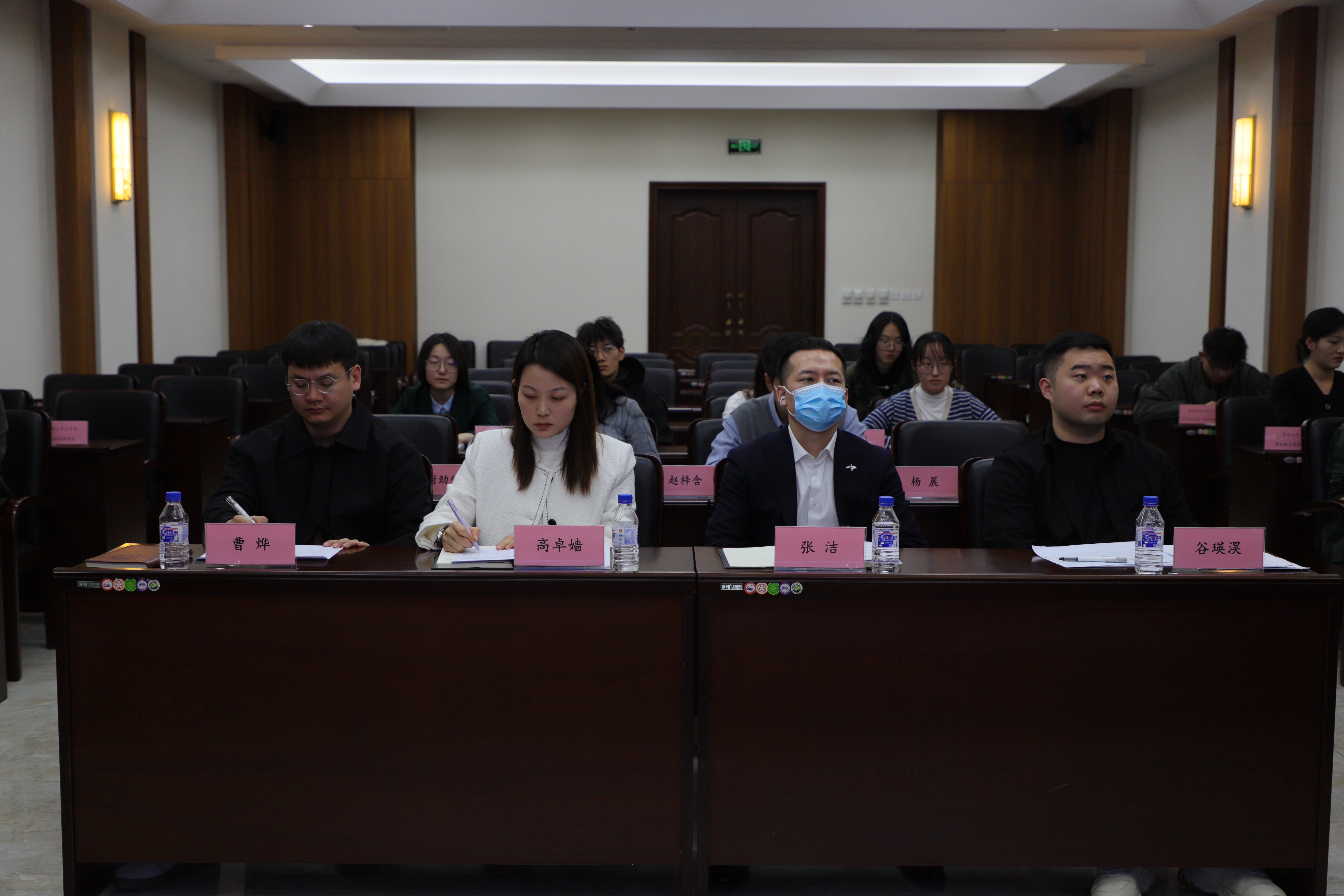 在东荣大厦B303召开2023-2024学年社团答辩大会,学院党委副书记兼副院长、纪委书记张洁,本科生辅导员高卓嫱、谷瑛淏、曹烨,麻豆