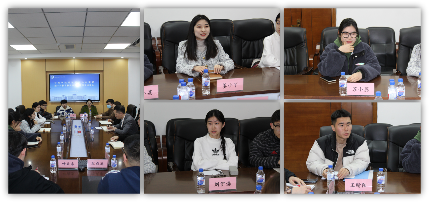 3月12日,学院召开2023-2024学年第二学期开学思想动态调研暨本科教育教学培养工作师生座谈会,张洁、高卓嫱、谷瑛淏、曹烨与各年级各类别本科生代表亲切交谈,分享各自多彩的假期生活,不同地点、不同体验以及不同岗位的所见所思,展现了同学们在思想意识方面的成长进步。座谈会为学院及时了解并科学研判新学期返校本科生思想动态,把握学院本科生关心关注的热点、焦点、难点问题,有针对性地做好新学期相关工作打下了坚实的基础。