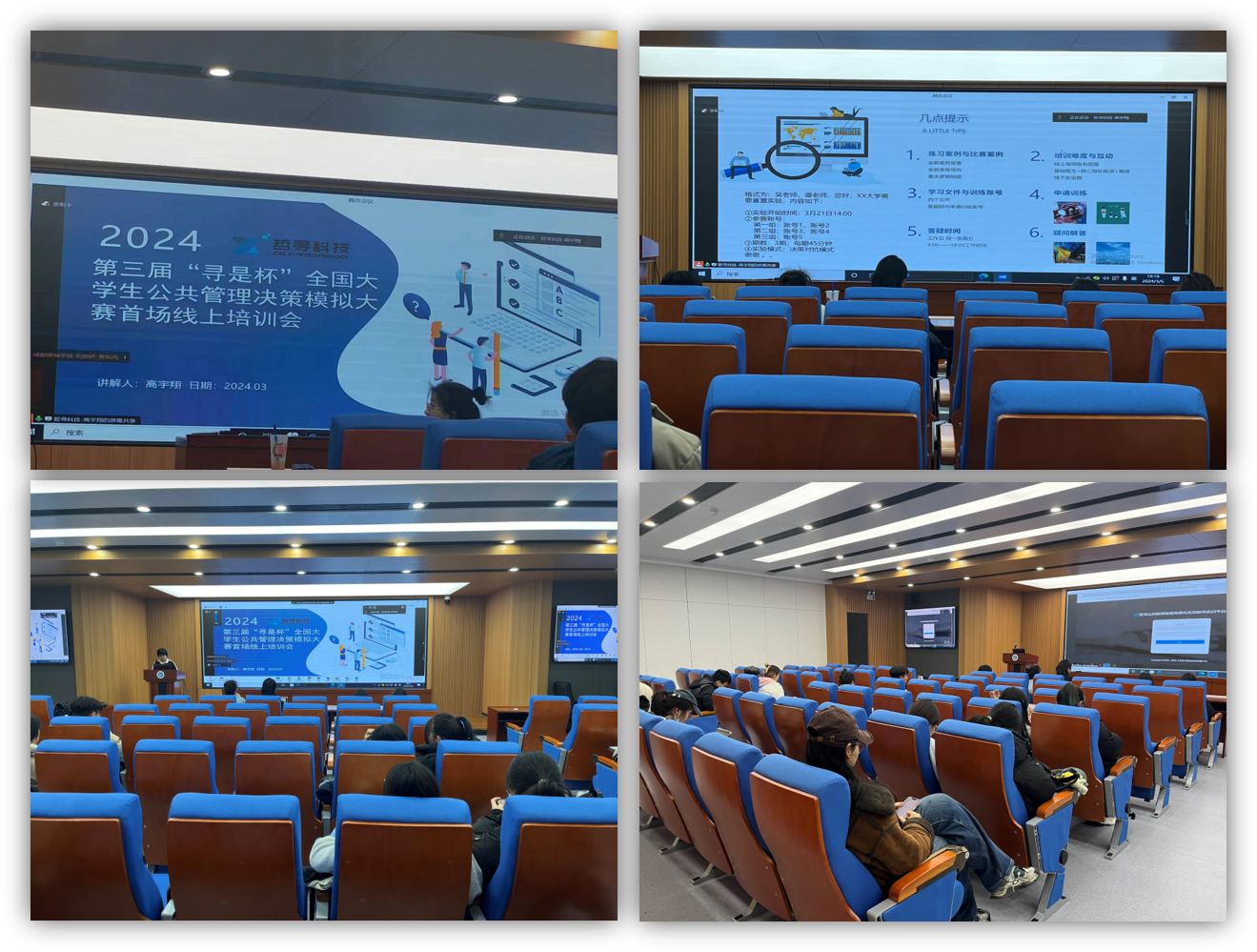 3月5日,学院开启第三届“寻是杯”全国大学生公共管理决策模拟大赛首场线上培训会。依托第二届比赛中的竞赛基础,学院在开展培训会的同时,建立2024年度“寻是杯”东北赛区选拔群,同学们热情高涨,积极备赛。 “寻是杯”全国大学生公共管理决策模拟大赛对于激发学生的学习热情、培养全面系统地认知公共管理理论与实践、锤炼系统思维、专业实践能力和团队合作精神,具备极其重要的意义。