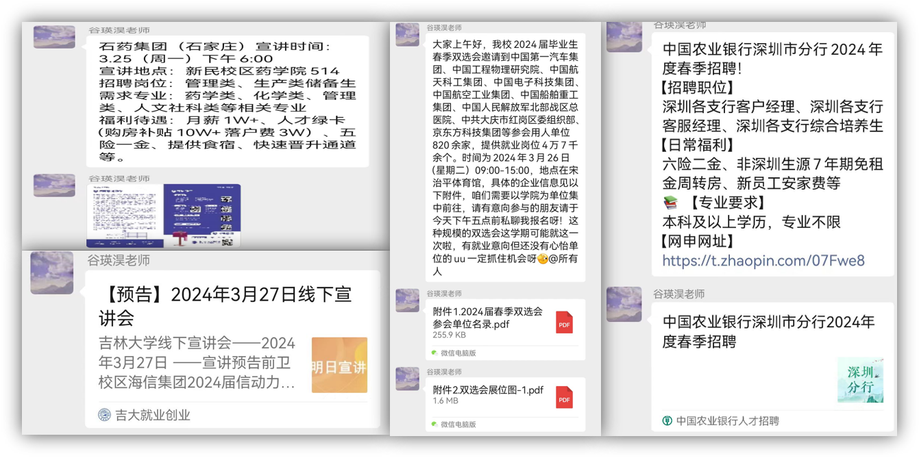 学院积极落实就业工作相关决策部署,加强教育指导,提供精细化就业服务,组织学生参加毕业生春季双选会,为7名学生组织线下政审,发布就业信息累计40余条,给学生提供多重发展渠道,丰富学生就业选择,有效提高就业率。