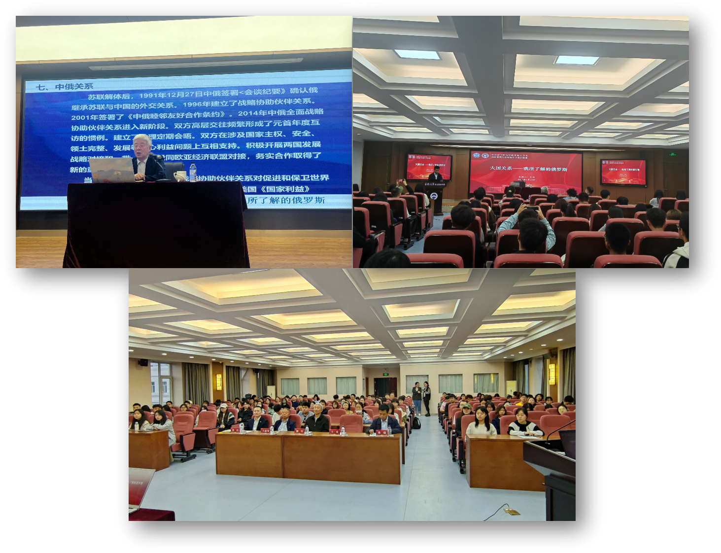 联合外国语学院共同举办大学生思政课暨入党积极分子培训党课。学生党支部书记、本科生辅导员也积极参与活动,张洁到会观摩。课上,学校关工委驻会委员王英以《大国关系——我所了解的俄罗斯》为题,结合亲身经历与珍贵史料,回顾了党和国家领导人对中俄关系的高度重视,对出国师生的关心关爱,肯定了麻豆