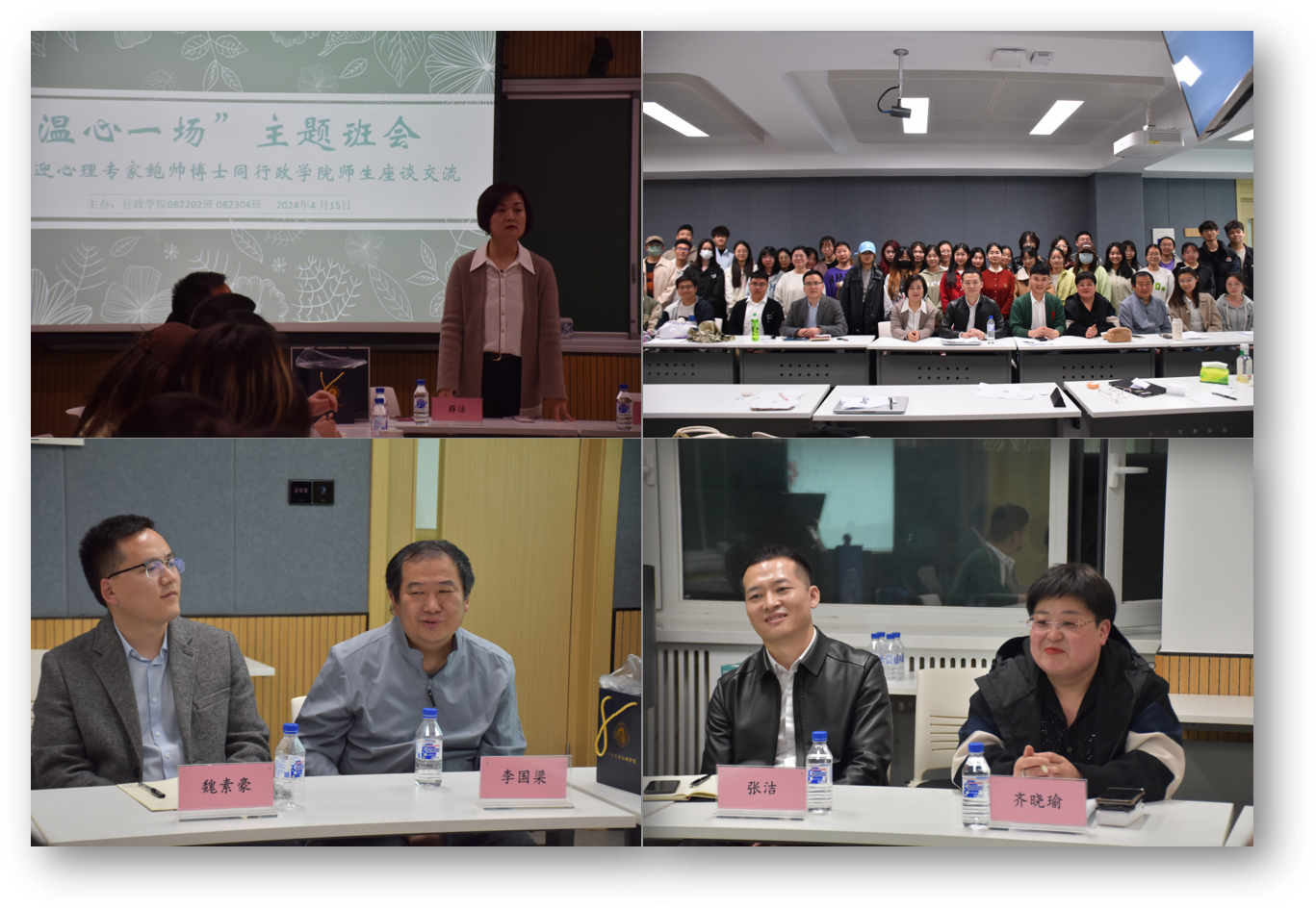 4月15日,学院面向本科生召开“温心一课”主题联合班会,心理咨询专业人士做客会议现场,学院领导与班主任教师应邀参会。通过案例分析、现场游戏、互动交流、经验分享等多种方式,同学们上了一堂生动的心理健康通识教育课。张洁鼓励同学们利用学校相应配套资源解决心理健康问题。参会师生敞开心扉,亲切交流,会议气氛热烈融洽。今后,学院将深入扎实开展大学生心理健康教育工作,持续关注学生思想动态和情绪状况,注重塑造公共精神和独立人格,不断增强学生心理素质,助力广大学生以良好的身心素质更好地成长成才。