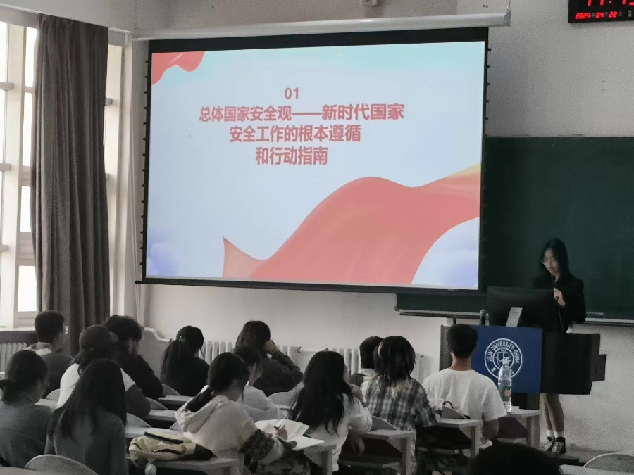 在总结收获阶段,学生代表王楠(2023级本科生)分享了自己在本次团日活动中的学习收获和个人感受。她表示,通过此次活动,我们更加深刻地认识到每个公民都肩负着维护国家安全的责任,无论是未来步入工作岗位还是在日常生活中,都应该时刻保持警觉,积极参与到国家安全建设中来,为强国建设民族复兴提供国家安全坚强保障是新时代青年的神圣职责和光荣使命。