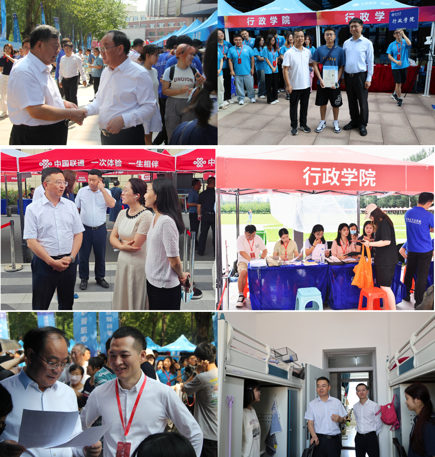 师生员工敞开怀抱喜迎八方来客。学校党委书记姜治莹、校长张希等校领导到中心校区北苑四公寓周边、清湖西岸看望新生并慰问迎新工作人员和志愿者,学院院长张贤明、党委书记陈希贵共同参与迎新工作。学院秉承热情周到、精准高效的原则为新生办理入学手续,快速核验学生身份,认真交接重要资料,精准发放爱心物资,耐心宣介报到须知,逐一特写合影留念。新生报到接近尾声时,学院领导班子成员和新生辅导员到学生公寓走访慰问。