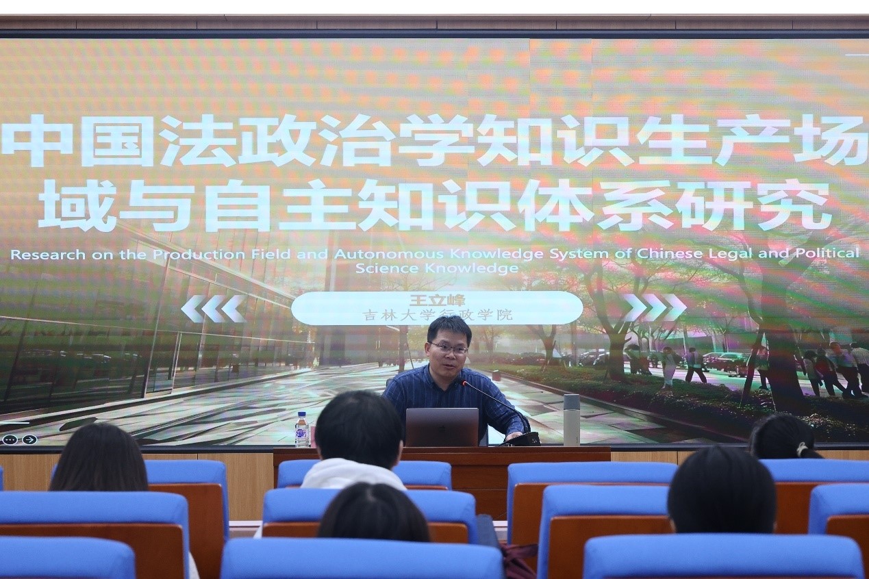 王立峰以《中国法政治学的知识生产场域与自主知识体系》为题进行讲授,指出法政治学是法学与政治学的交叉学科,融汇了法学与政治学的两大学科资源,其知识生产离不开法律场域与政治场域的相互作用。中国法政治学构建需观照中国现实,并从意识形态、民主政治、党政体制、法治道路、中国式现代化五个维度进行具体分析。王立峰强调自主知识体系建构的重要性依赖于原创性、衍生性和新诠性标识性概念。在学术体系上,权利与权力关系是核心,需制度化交织,方法论应思辨、实证、经验并重。王立峰提出,要系统化建设法政治学教学、师资、课程,培养复合型人才,倡导以马克思主义为指导,构建中国特色知识体系,助力中国法治与治理现代化。