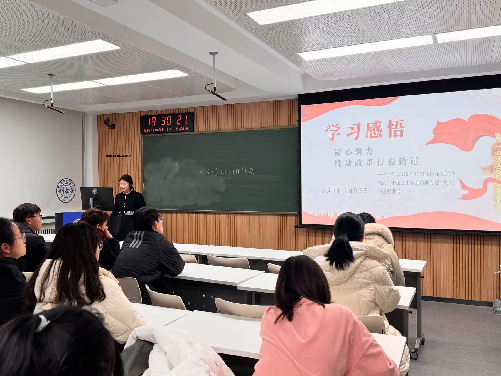学习解读环节,孙唯维(2024级本科生)带领同学们回顾了党的二十届三中全会的重要内容和习近平总书记的重要讲话精神,阐释了全面深化改革在新时代奋斗征程上的重要意义,引导同学们认识新时代全面深化改革取得的重大实践成果、制度成果和理论成果。