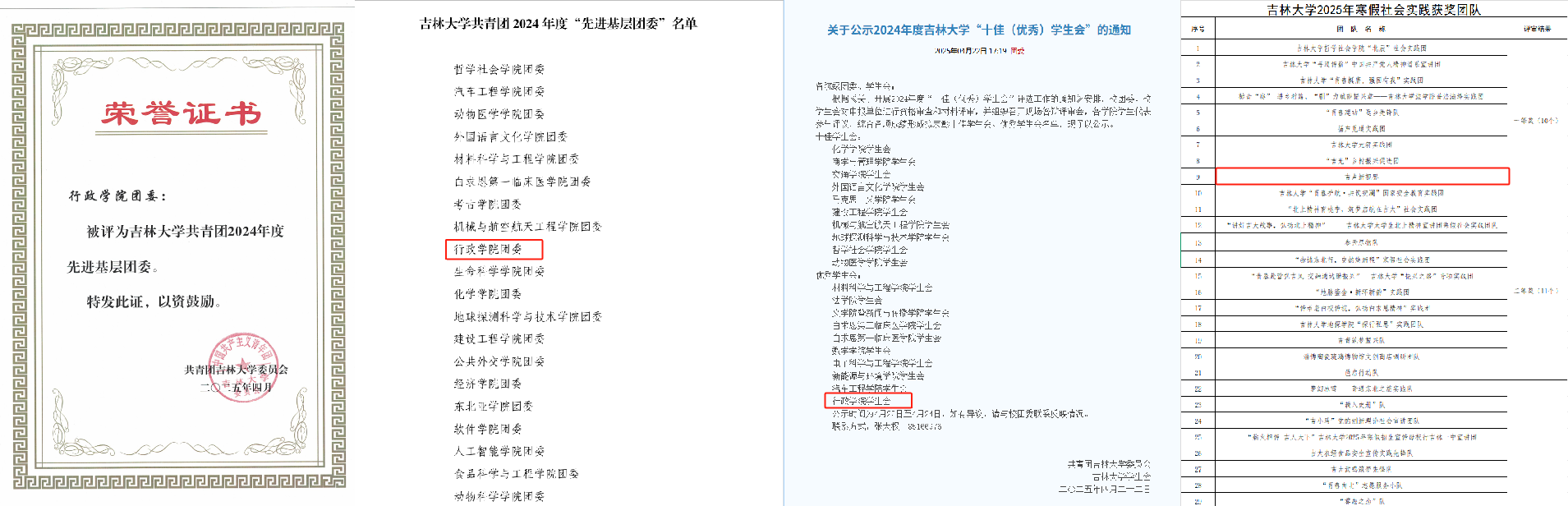 学生会荣获2024年度“优秀学生会”,学院“吉声新视界”团队荣获2025年寒假社会实践一等奖。