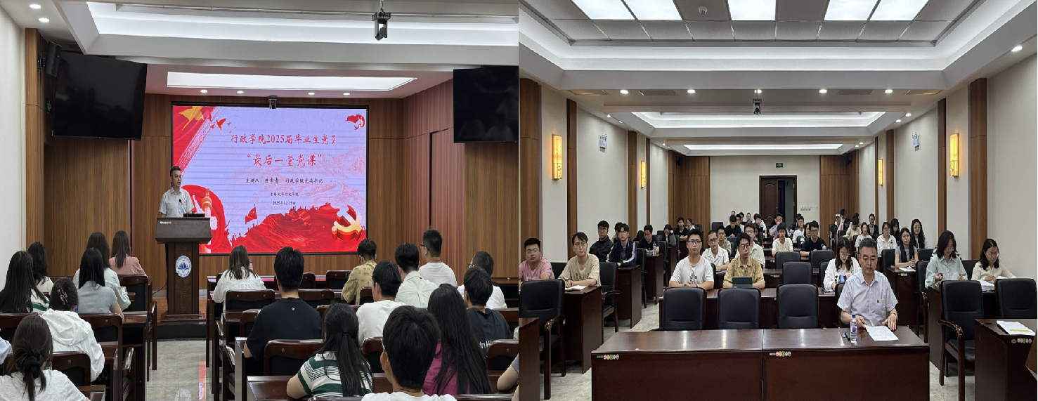 “希望大家始终牢记党员第一身份,无论未来身处何方、从事何种职业、成就怎样的事业,都要永葆初心本色,严守纪律规矩,矢志拼搏奉献,在中国式现代化的壮阔征程中行稳致远”,学院党委书记陈希贵为毕业生党员上最后一堂党课。正值深入贯彻中央八项规定精神学习教育时期,陈希贵以《以良好的党性修养和作风素养开启新的人生征程》为题,带领与会党员回顾和梳理十八大以来的党内集中学习教育,帮助毕业生党员进一步明确今后加强党性党风党纪教育的重点。同时,为与会党员重点讲述中央八项规定精神以及学习教育相关内容,阐述形式主义、官僚主义、享乐主义和奢靡之风的主要表现和危害,勉励与会党员在今后的学习工作生活中时刻牢记党员身份,时刻用党章、用共产党员标准要求自己,时刻自重自省自警自励,努力做到“心不动于微利之诱,目不眩于五色之惑”,老老实实做人,踏踏实实干事,始终保持共产党员的本色。