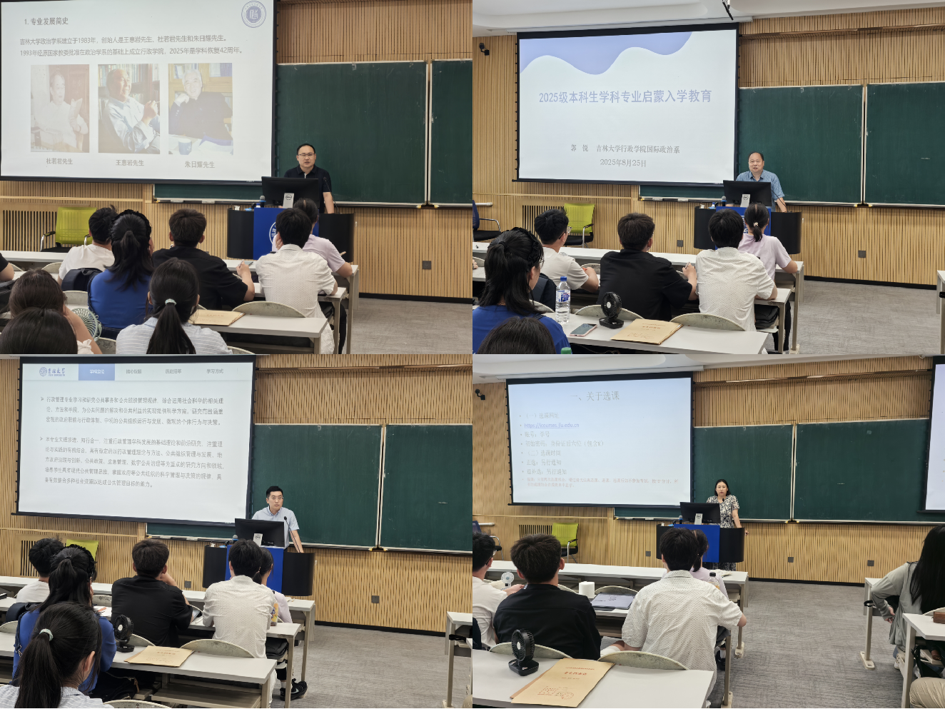 8月25日下午,学院组织学科专业启蒙教育,政治学系副主任田玉麒副教授围绕政治学与行政学专业,介绍培养定位、课程设置、就业前景及学科特色,引导新生认识专业的学术价值与社会应用价值;国际政治系主任郭锐教授聚焦国际政治专业,从研究范畴、师资团队、学术活动等方面激发新生对国际政治领域研究的兴趣;公共管理系常成副教授结合实际工作场景,分享职业发展方向与能力培养重点,为新生搭建清晰的专业认知框架。