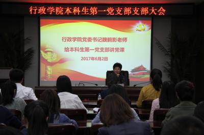 本科生第一党支部在中心校区东荣大厦B303会议室召开了支部大会。会议由党支部书记任建国(2013级)主持。院党委书记魏鹤影老师、党委副书记兼副院长史慕华老师出席会议。会后,魏鹤影书记应邀为本科生第一党支部同学讲授了专题党课。