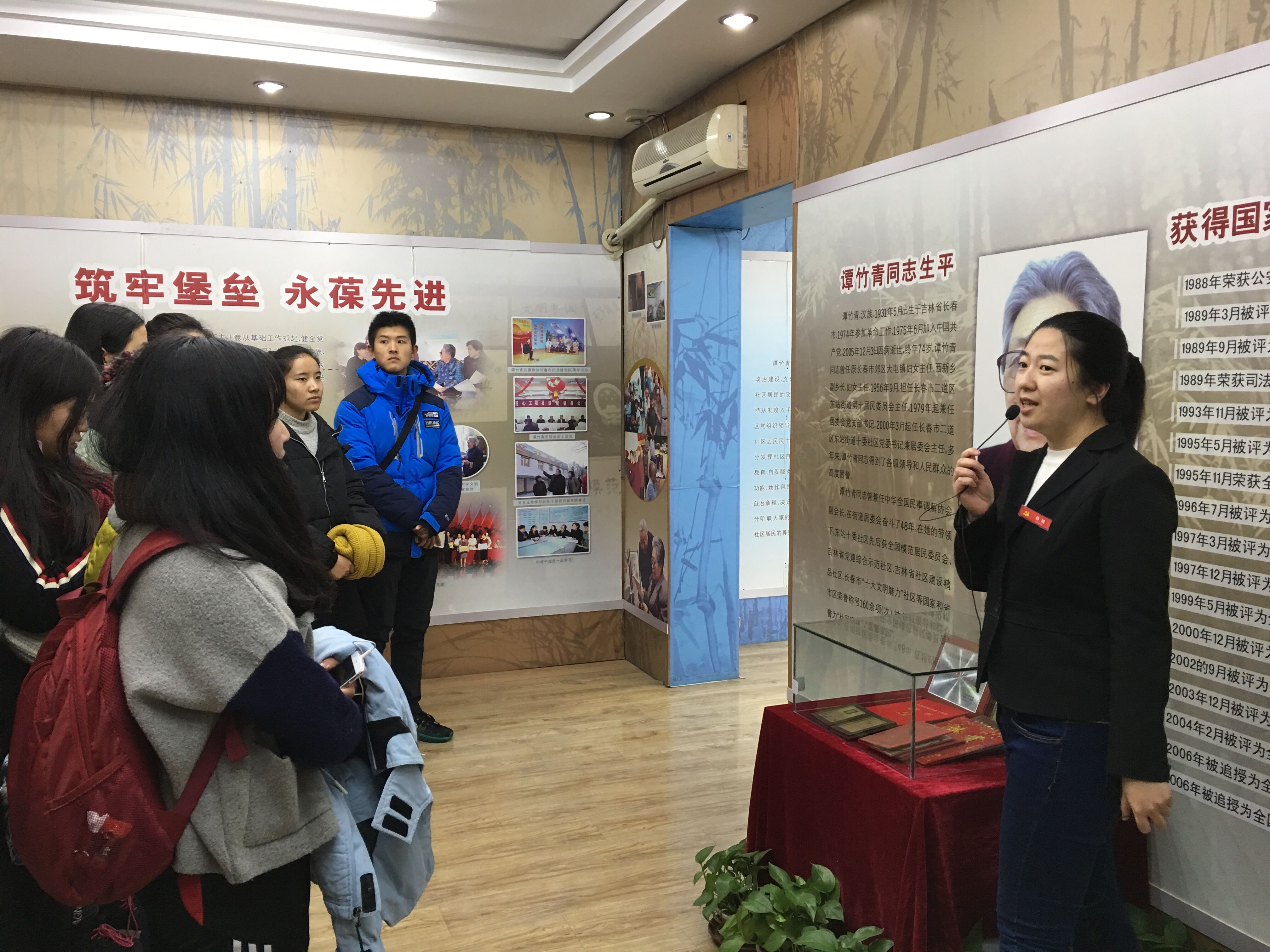 志工部组织部分本科生于当日下午13:00乘车到十委社区参观了谭竹青优秀事迹报告会。