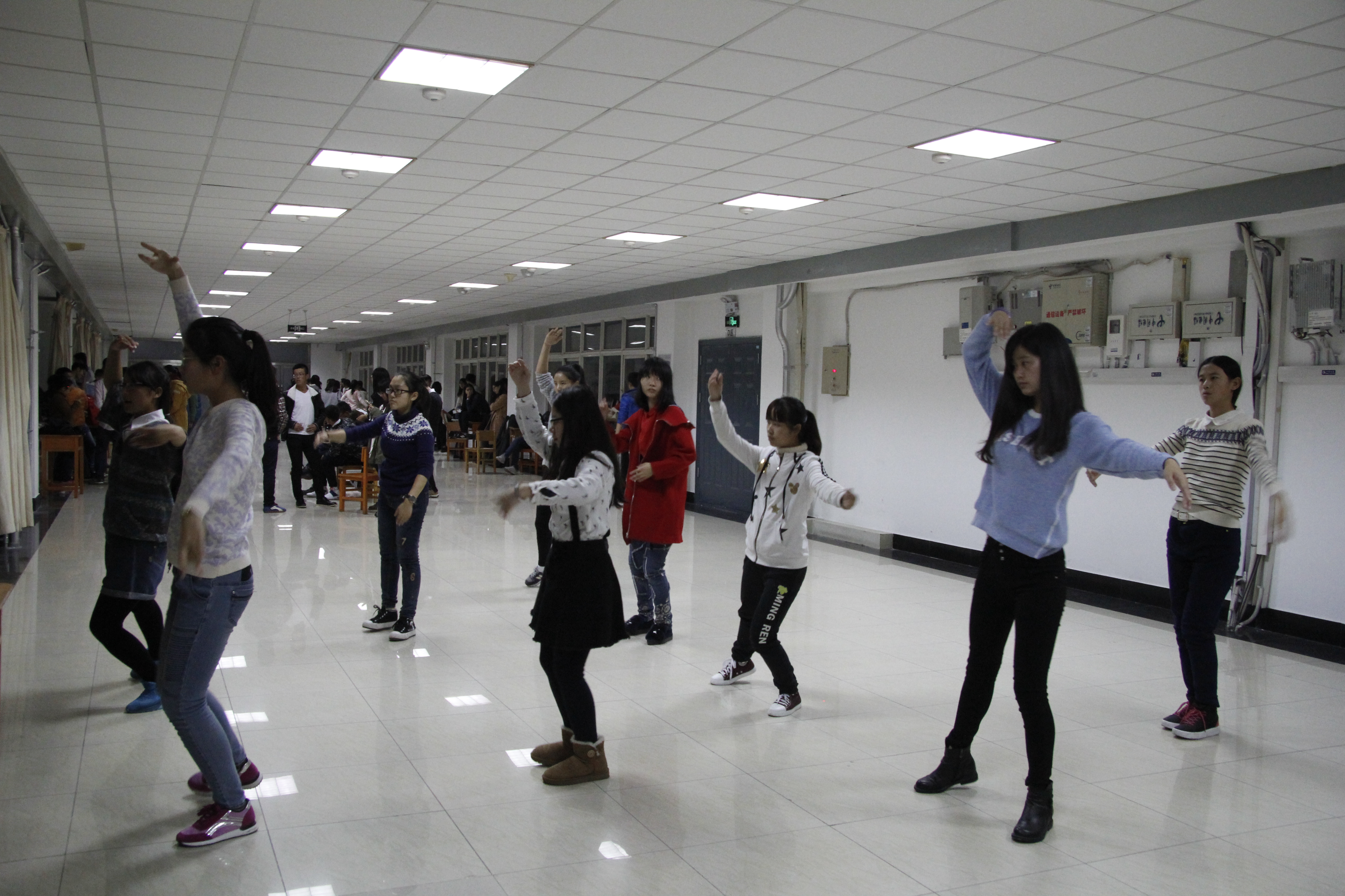 本科生辅导员曲畅竹、院学生会成员参与了晚会排练工作,全体报名节目的16级新生参加了晚会的排练。