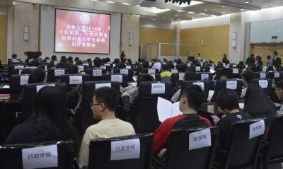 2016年十佳大学生初评答辩会。评审委员会将根据投票结果(前20名)确定参加终评答辩会的候选人。