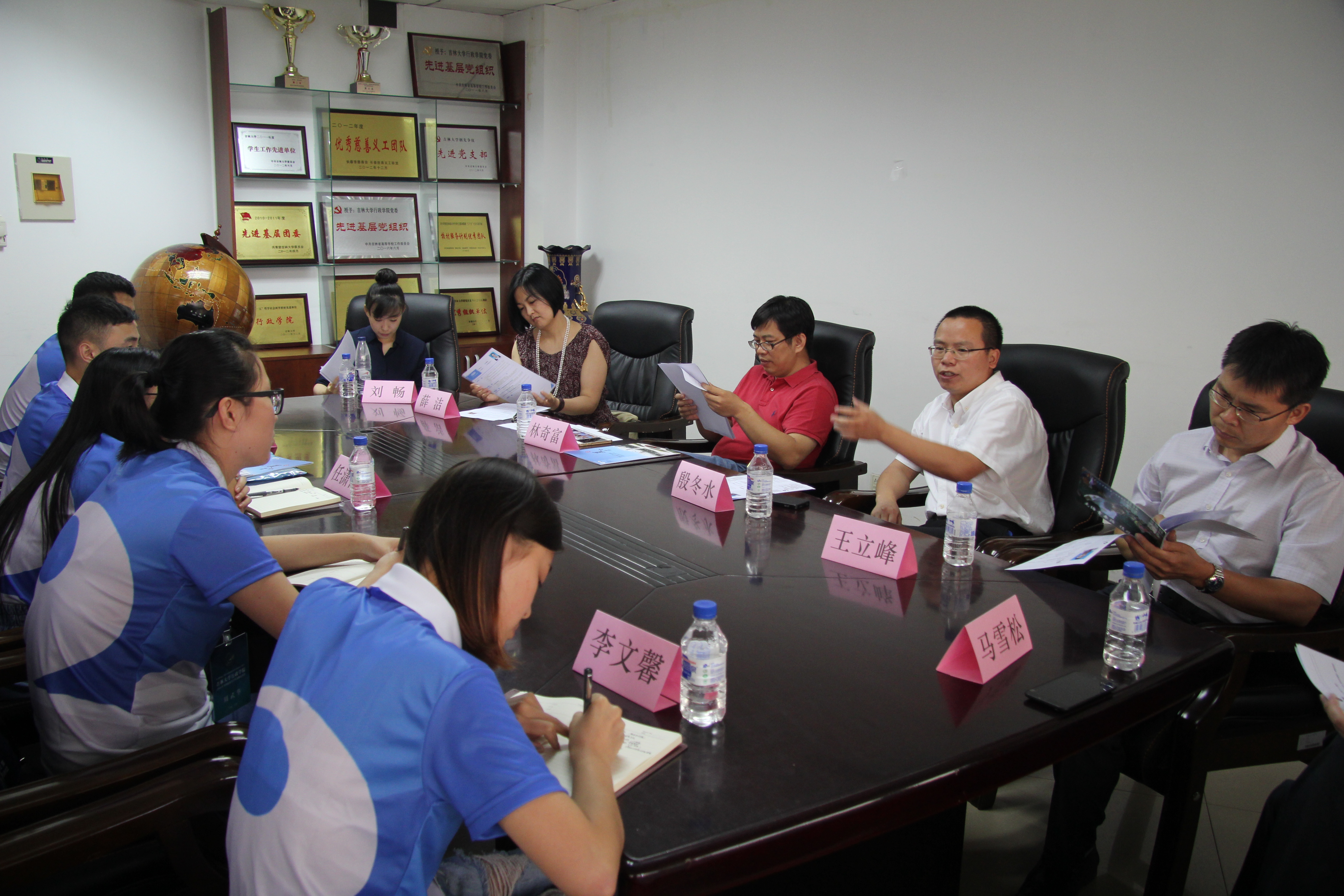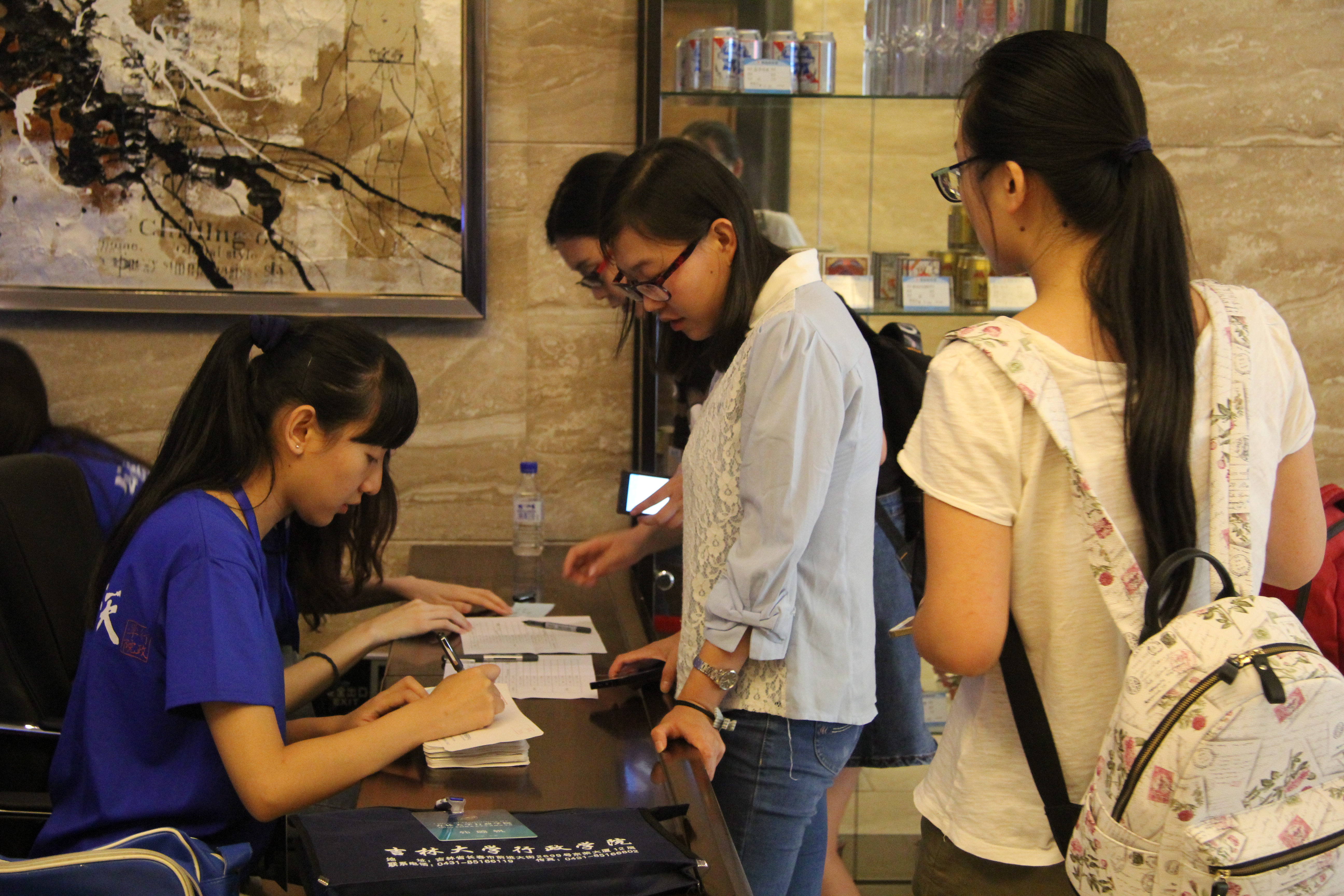 志愿者团队在长春卡斯顿酒店组织夏令营成员进行报道,并于下午6点于东荣大厦1203室、1204室、1214室分别举行了政治学系、国际政治学、行政管理学三个专业的师生见面会。