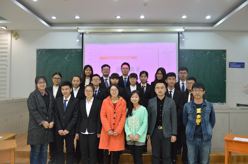 本科生辅导员曲畅竹,辩论队现任领队张力伟,前领队吴兴识、贾茹、余春晖担任此次辩论赛评委。辩论队教练组以及2015级全体新生参加了活动。比赛由学生会秘书部张启聪(2015级)主持。