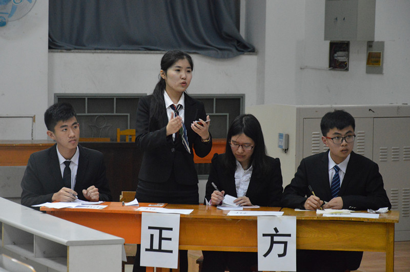 主持人张启聪首先向参赛队员、比赛评委以及在场观众宣读了比赛规则以及比赛程序。本次辩论赛由两场辩论组成,辩题分别为“大学生可不可以基于正当理由逃课”以及“喜新厌旧是正当权利还是弃责背叛”。第一场比赛辩题更贴近大学生现实生活,辩手们的立论和辩驳也更多的利用了身边的例子,正方在尊重规则的前提下选择尊重大学生选择自身发展途径的自由,而反方则站在大学生身份的角度认为学生应该遵守学生守则。比赛过程中双方辩手思维敏捷妙语连珠,获得阵阵掌声。第二场比赛趣味性较大,辩论过程中双方都引用了很多影视文学作品中的爱情故事,极大地增加了比赛的看点。揭晓比赛结果前,吴兴识和张立伟分别对两场辩论进行了精彩的点评分析,指出了辩论中出现的漏洞,表扬了辩手的良好逻辑,同时也提出了几点建议。最终经由评委打分,第一辩题之反方辩队以及第二辩题之正方辩队成功晋级决赛。第一场比赛的正方二辩王帅和第二场比赛的正方四辩叶圣泓则夺得了最佳辩手的荣誉称号。活动最后,曲畅竹和大赛评委为最佳辩手和获胜队伍颁奖并进行合影留念。