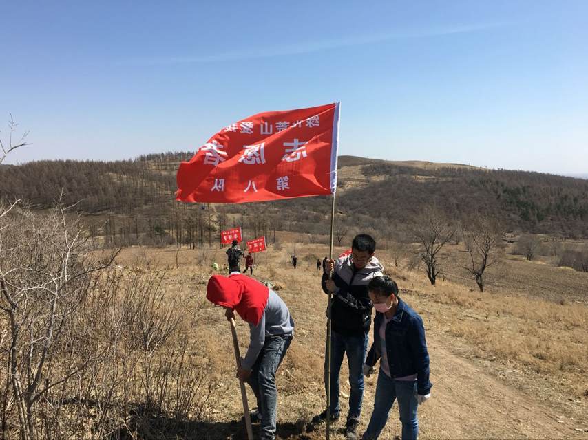 081402班联合长春市工商联药品流通行业商会于4月9日在吉林省四平市伊通县马鞍山镇马鞍山林场共同举办了“拥抱春天,播种绿色”主题植树活动。