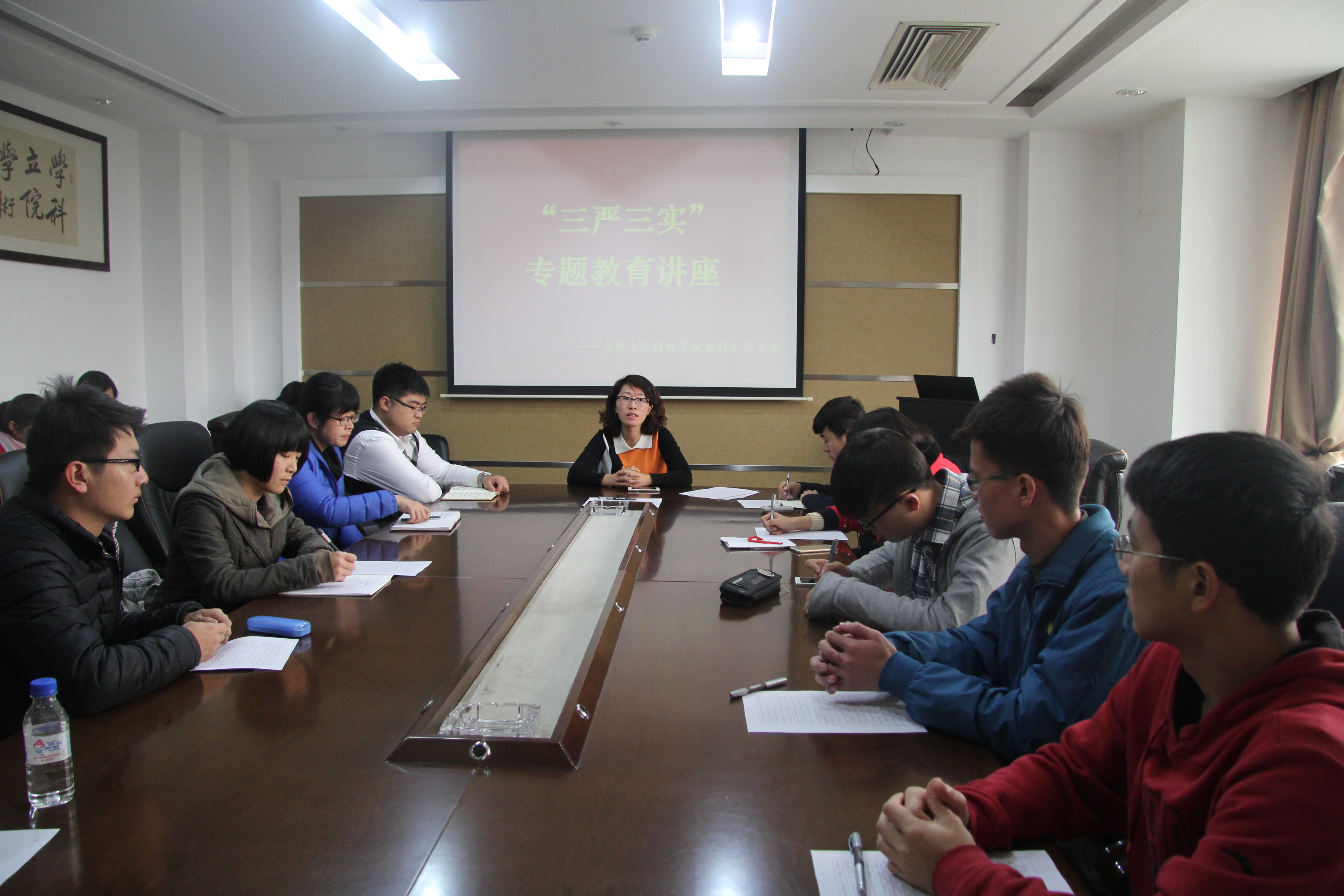 在前卫南区东荣1214会议室对全体本科生党员开展了第三次“三严三实”专题教育。党委副书记兼副院长史慕华主持此次会议,本科生辅导员刘洋、曲畅竹出席此次会议。