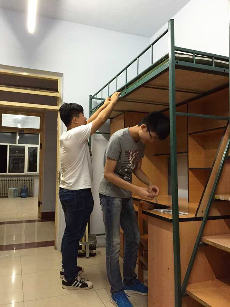 于8月26日组织学生干部对新生寝室进行了门楣、床铺信息单的张贴以及寝室设施检查工作。本科生辅导员曲畅竹,2015级新生代理班主任孙诗淇、方敬元、郝瑞琪、陈博以及其他学生干部参与了张贴工作。