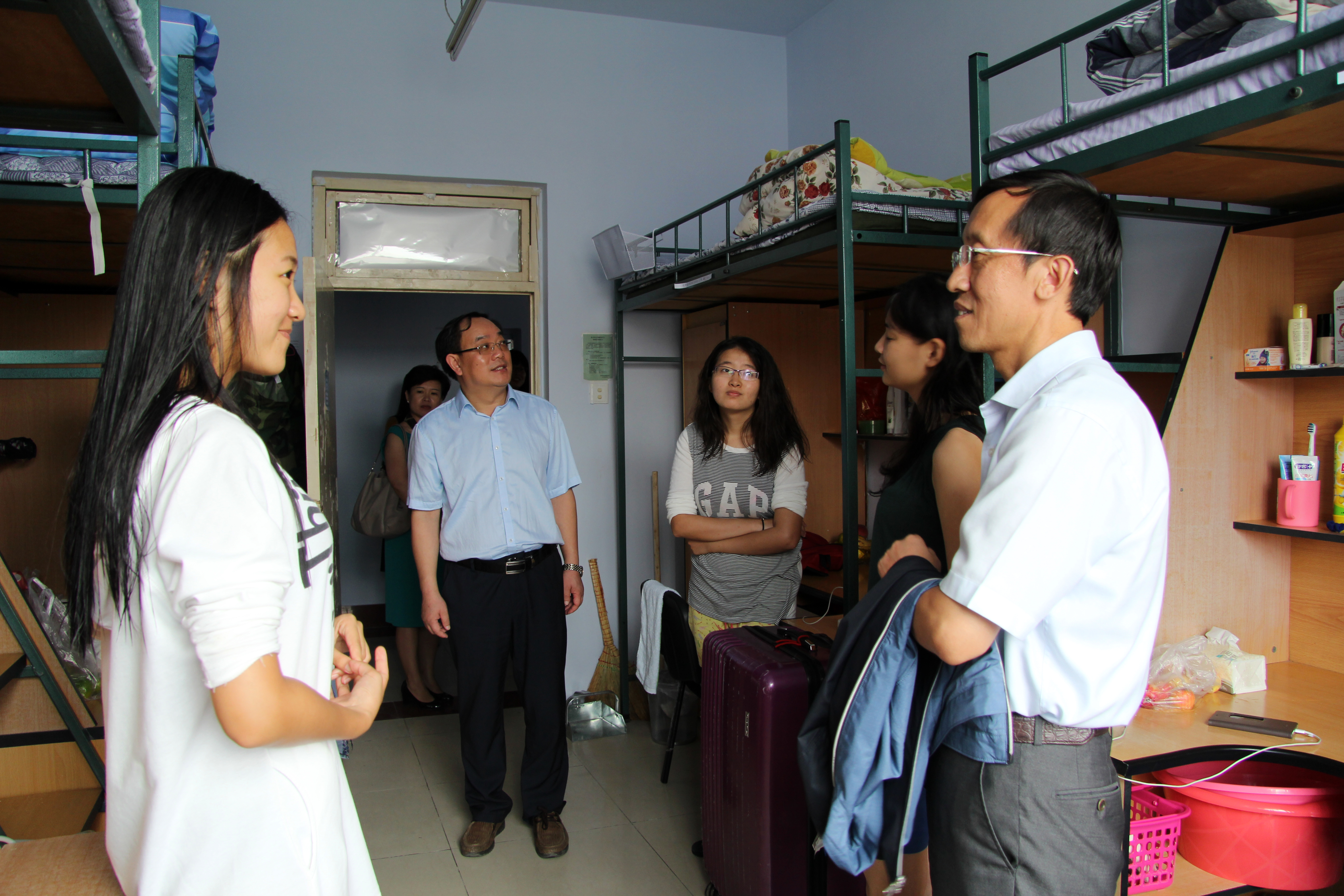 院长张贤明、党委书记边铁、党委副书记常有余、党委副书记兼副院长史慕华以及副院长许玉镇、殷冬水等院领导,在本科生辅导员曲畅竹及学生组织负责人的陪同下于9月1日来到前卫南区大学城寝室看望了麻豆