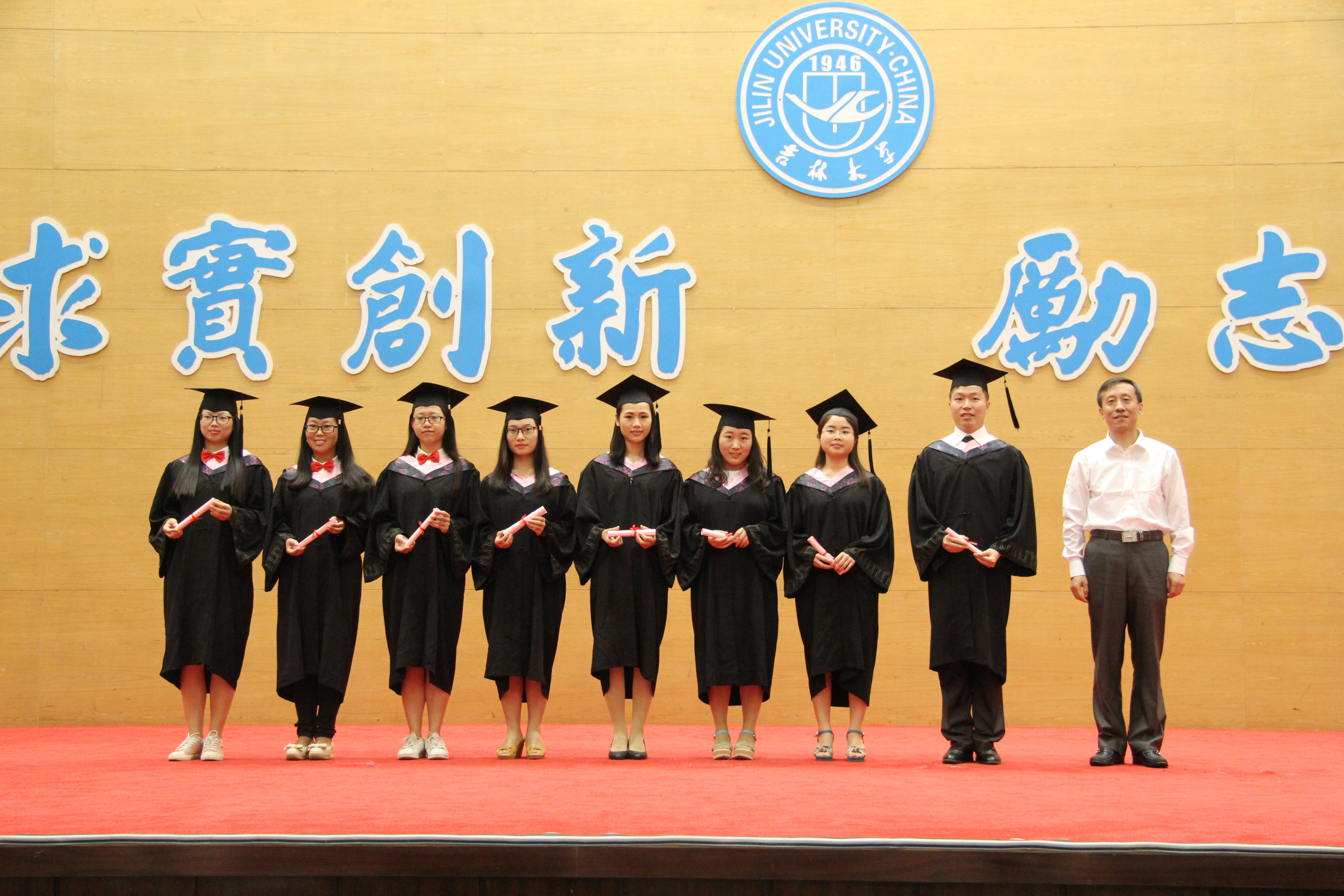 比作大树,为学生们遮风挡雨,荫庇他们不断成长。他铭记老师的厚重期待,感恩母校的悉心教导,并对一路共同走来的同学们表达了美好的祝愿。于淼淼代表2015届毕业研究生发言,她首先向为学生答疑解惑的老师们致以诚挚的谢意,紧接着回顾了研究 生时代的学习感悟和对校园生活的美好回忆;她提到求真务实、超越自我、不忘初衷是她硕士生涯中最大的收获。最后她表达了对老师、对父母、对同学、对学院的诚挚的祝福。