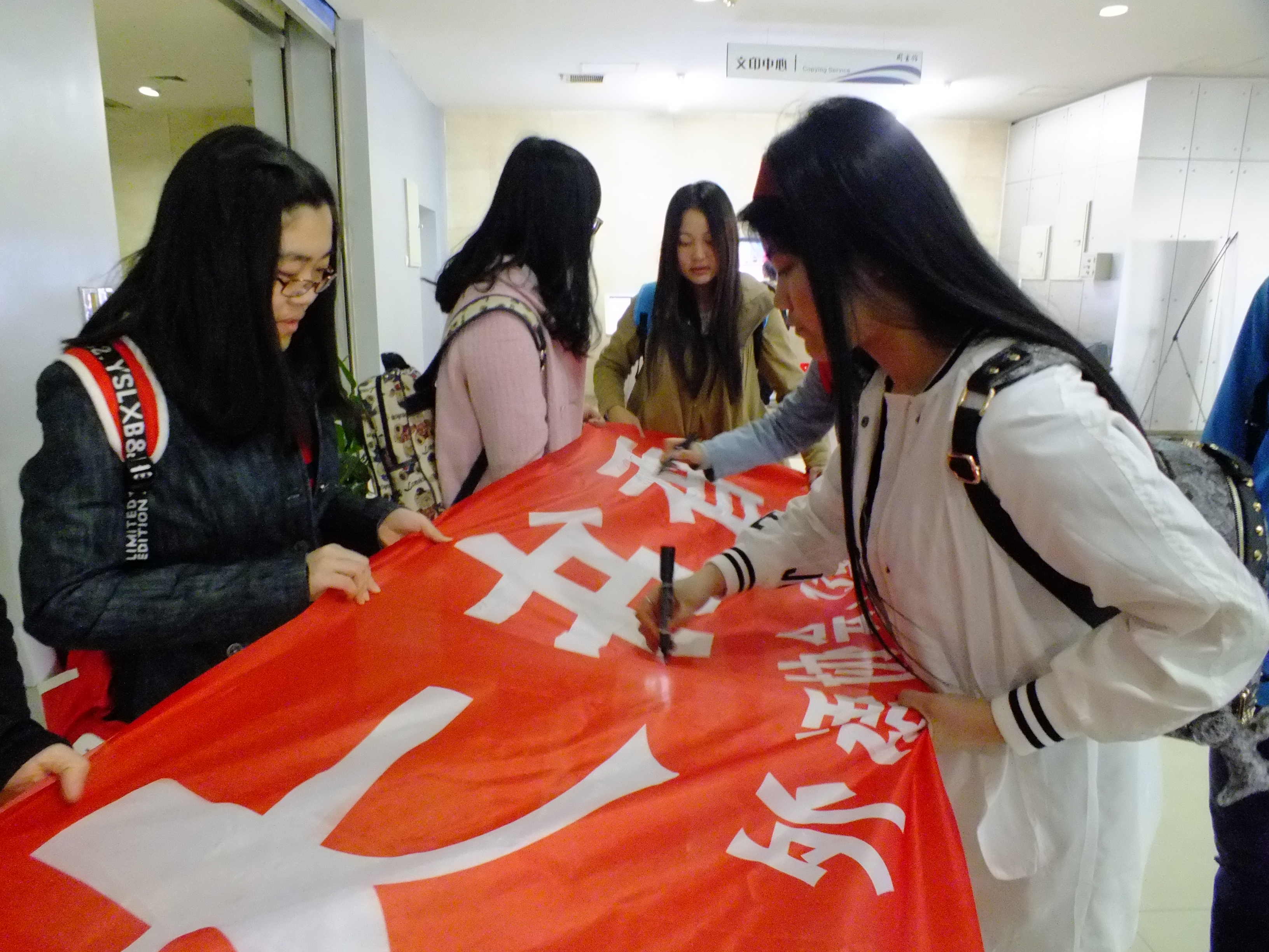 活动于早8点30准时开始。在图书馆正门的导视台前,闫智代表图书馆发表讲话。闫智首先欢迎同学们来参加此次图书馆志愿服务活动,他说,在世界读书日期间同学们来图书馆参观、了解图书馆日常工作运转程序、参加读书日活动并进行志愿服务,是对书的尊敬、是对知识的向往。他勉励大家平时要多来图书馆,多读书、善读书,把大学里的这座知识宝库真正利用起来,丰富自己、完善自我。接着,在思潮学社社长孟祥铎的邀请下,闫智带着同学们在主题条幅上签字题名,表达大家对于书籍、阅读的热爱以及以后要将读书培养为一种习惯的信念。之后,闫智带领同学们参观了图书馆的期刊阅览室、信息共享空间、古籍阅览室、采编部等部门,以便让大家了解图书馆平时的工作流程。经过闫智的介绍,同学们明白了期刊阅览室作为收集资料、撰写论文等中的重要性、信息共享空间中各式先进图书阅览设备的先进性、古籍阅览室存放着的历史古籍的厚重和丰富、采编部繁忙工作对于整个图书系统稳定运行的后勤保障作用。接着,闫智带领同学们来到图书馆一楼,给大家介绍了图书馆举办的第三届“阅读·更多精彩”读书月系列活动,他向大家介绍了“图书装裱”工艺的负责人好、简要说明了图书装裱的流程;在“图书漂流”展台前,他鼓励大家参与这项有意义的活动,鼓励更多人参与到书的传递、知识的传承上来。在3D打印展台前,闫智向大家介绍了我国3D的技术的发展情况,进一步强调了读书和知识对于经济社会发展的重要作用。最后,大家来到图书馆3楼的中文理科图书借阅区,拿出毛巾、打水、分配任务区,开始清理、擦洗借阅区的书架和其他图书设施。经过大家认真勤奋的劳动,阅览室变得更加干净整洁。