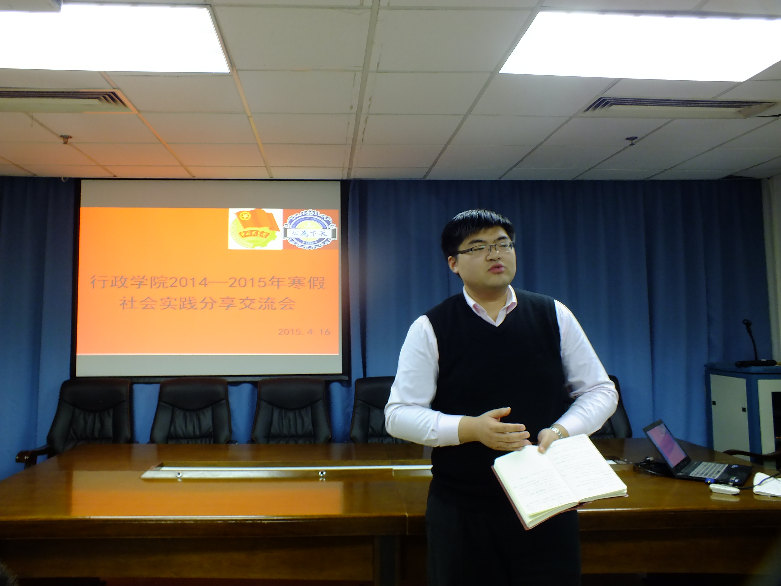于前卫南区东荣大厦511会议室召开了“当代青年学生视野中的美好蓝图——吉大学子为‘十三五’规划建言献策”主题征文实践调研活动暨寒假社会实践分享交流会。本科生辅导员刘洋、曲畅竹应邀出席此次活动,团委主要学生干部也参加了此次活动。本次交流会由石可欣(2014级)主持。