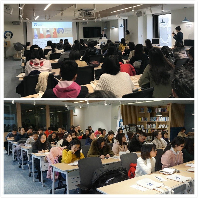 12月17日上午,调研团来到韩国首尔国立大学进行访问、调研。期间,首尔国立大学行政大学院相关负责人代领调研团深入了解了首尔国立大学的相关情况并对韩国的经济社会文化做了简要的介绍。首尔国立大学,简称首尔大,是韩国公认的最高学府,世界著名大学、亚洲顶尖的研究性国立综合大学之一。期间,调研团学生们与首尔大学的学生进行了面对面的深入交流,青年既是文明的传承者,又是文化新风尚的创造者和传播者,通过此次对首尔大学的访问,建立了中韩两国大学生之间沟通的桥梁,让学生们深入了解两国之间的文化和两国大学生的不同的学习生活和学习方式。