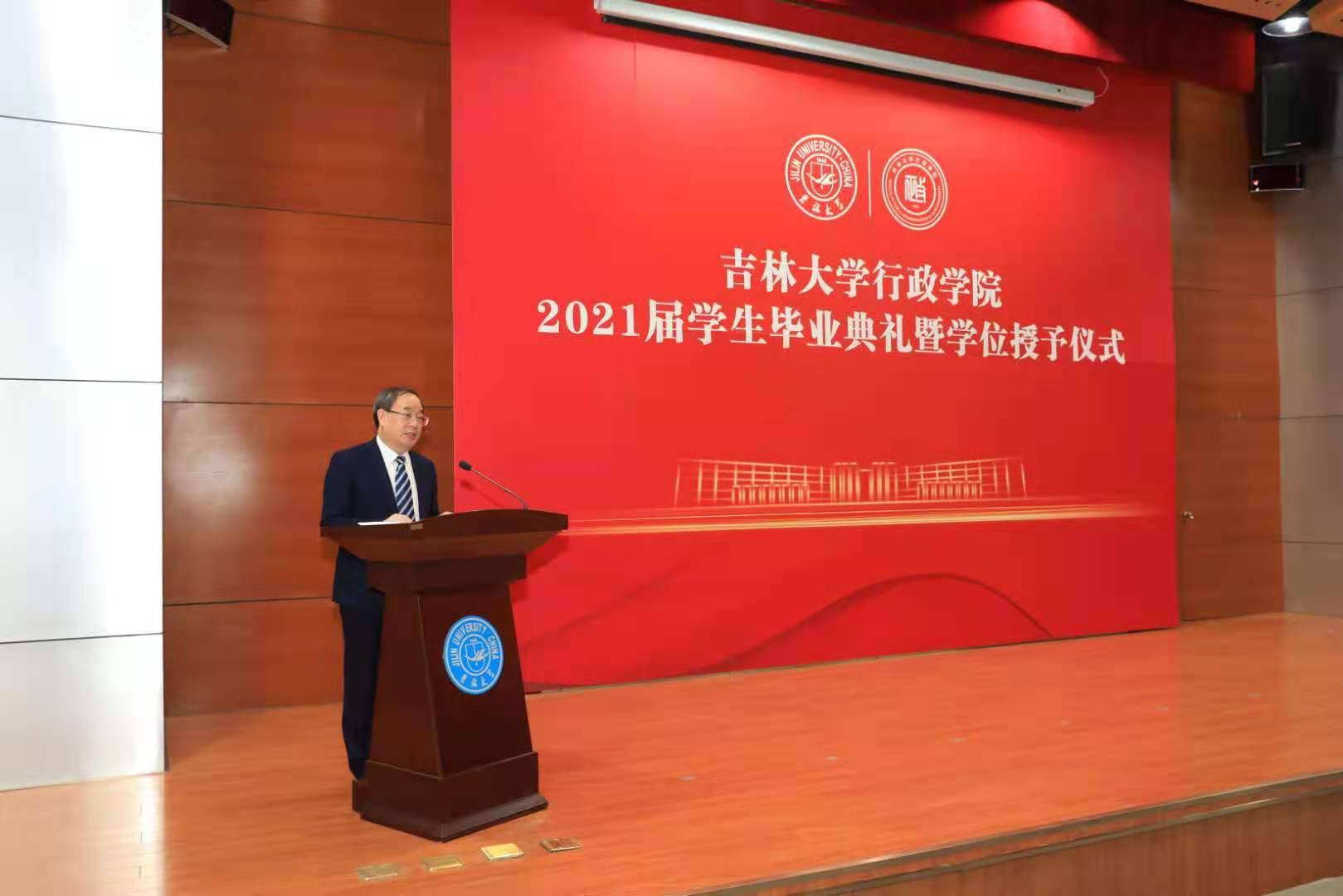 发展的老师、家长表达了感谢与敬意。张贤明与师生们共同追忆在校期间的美好点滴,对多年来全院师生员工教学相长、携手共进给予肯定。与毕业生们一起分享了关于人生的几点思考,勉励大家要坚定理想信念,持续学习、独立思考,不断强化规矩意识和法治精神,练就包容豁达的胸襟,坚持锻炼身体、陶冶高尚情操,学会选择、懂得放弃,踏实走好每一条路。张贤明对大家今后的发展表达了美好祝愿,并表示无论同学们走到哪里,自己会和老师们一直牵挂着、守望着、祝福着,吉大行政人的心,永远紧紧连在一起!