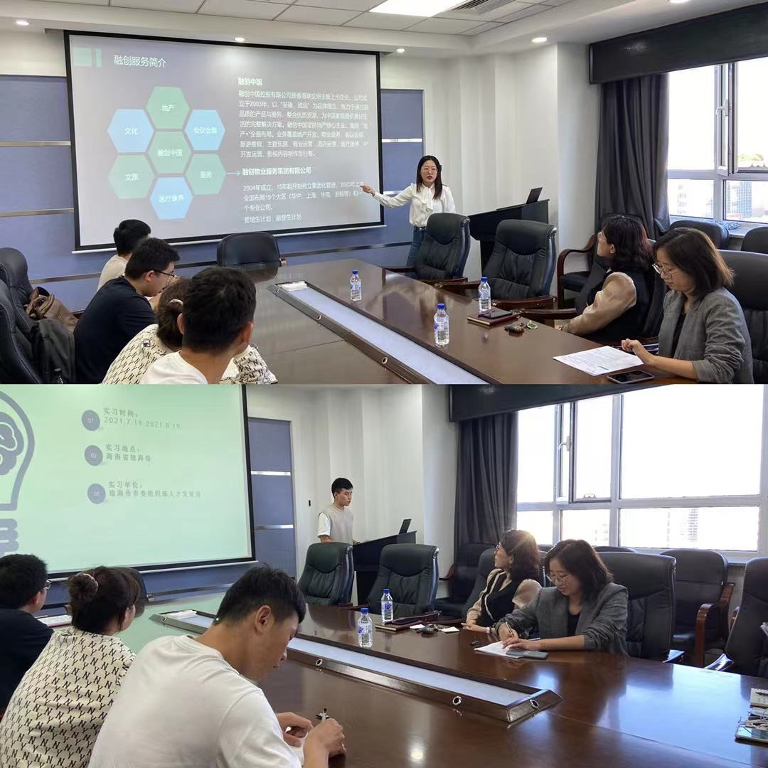 来自研二研三及即将进行求职的本科生代表进行了自己本次暑期实习的经验分享,通过PPT展示与同学们的生动讲解,让与会师生清晰直观地感受到学生丰富多彩的暑期实习活动。在海南省琼海市人才发展局进行实习的牟荆陵分享道:此次实习经历让他了解了地方政府机关的运转情况和工作氛围,感受了国家公务员的工作状态和工作作风,在参与实习单位的具体业务工作以及同基层公务员进行对话交流中对公务员这一职业有了更具象的认识,同时对未来对自身的职业发展也有了更清晰的规划;在融创物业服务集团进行暑期实习的刘波谈到此次自己的实习经历时,更是直言收获颇多,学院提供的这次实习机会让她不仅对物业行业有了一些初步的了解和认知,对公司和岗位类型、工作性质等有了更加清晰的认知,学习到职场中发展所需要的一些重要的特质,更收获了许多志同道合的优秀伙伴。