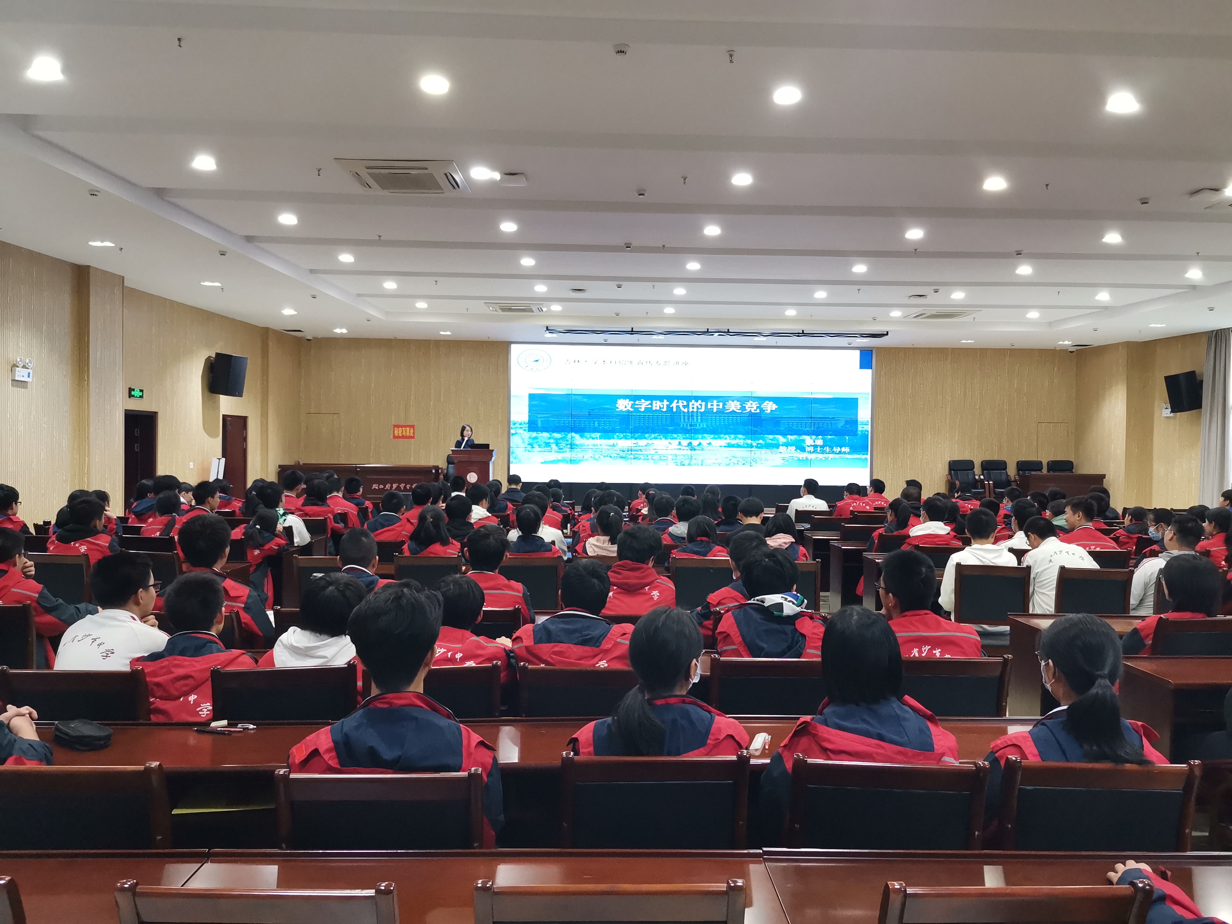 的兴趣,深入拓展招生宣传工作成效,在沙市中学、武汉市第二中学,姚璐教授以“数字时代的中美竞争”为题,分别面向高三、高一年级学生做了现场报告。姚璐从青少年学生普遍关注的时政热点切入,从“不确定”的数字时代与大国竞争、“历史的终结”与“曾经”的中美关系、中美关系迈入“竞争”、中美关系的前景四个方面进行了提纲挈领、深入浅出的讲解,博得会场学生的阵阵掌声,受到到访中学的高度赞许。报告会后,工作组教师耐心细致解答学生关心的问题,并发放学校招生宣传资料和纪念品。
