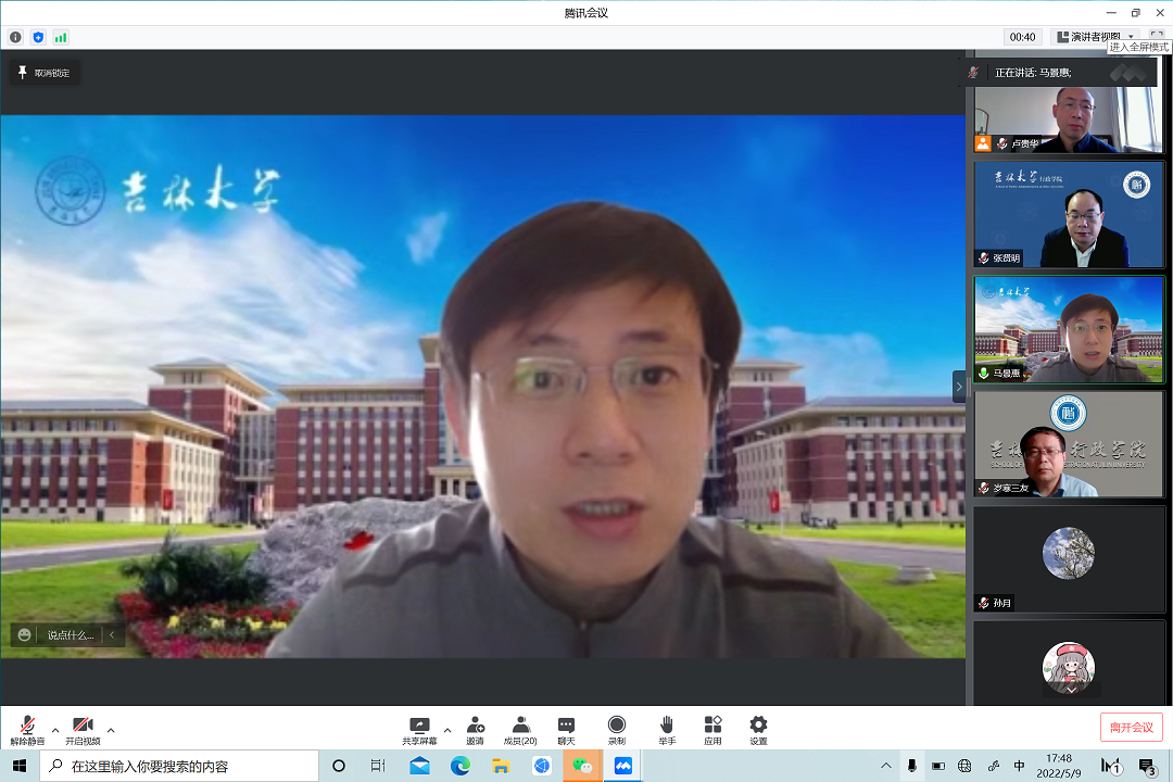 召开校园全封闭管理期间第七次疫情防控工作专题视频会议,学习传达5月5日中共中央政治局常委会会议精神、5月6日吉林省委常委会扩大会议暨省疫情防控领导小组会议精神,贯彻落实学校疫情防控工作专题视频会议(应急期间第八次)精神,根据学校疫情防控新形势新安排,进一步明确任务、压实责任。学院疫情防控工作领导小组成员、本科生班主任和研究生指导教师代表、教工党支部书记、本科生和研究生教学及学生工作办公室负责人、行政办公室负责人等参加会议。会议由学院党委书记马景惠主持。