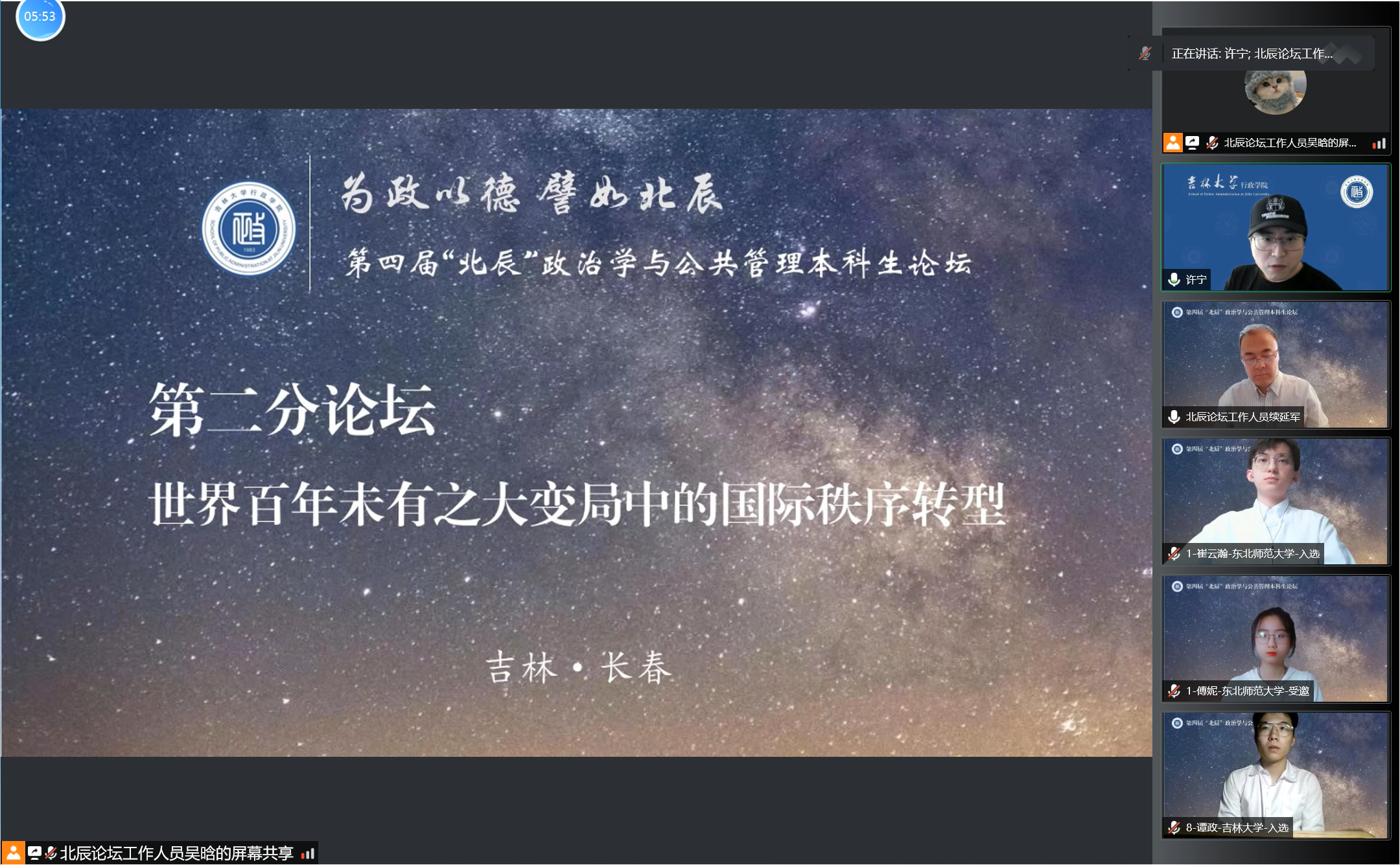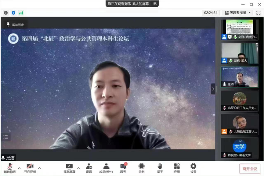 举办第四届“北辰”政治学与公共管理本科生论坛。论坛以视频会议形式在线上进行,共有78所高校的159名同学参加本次论坛。