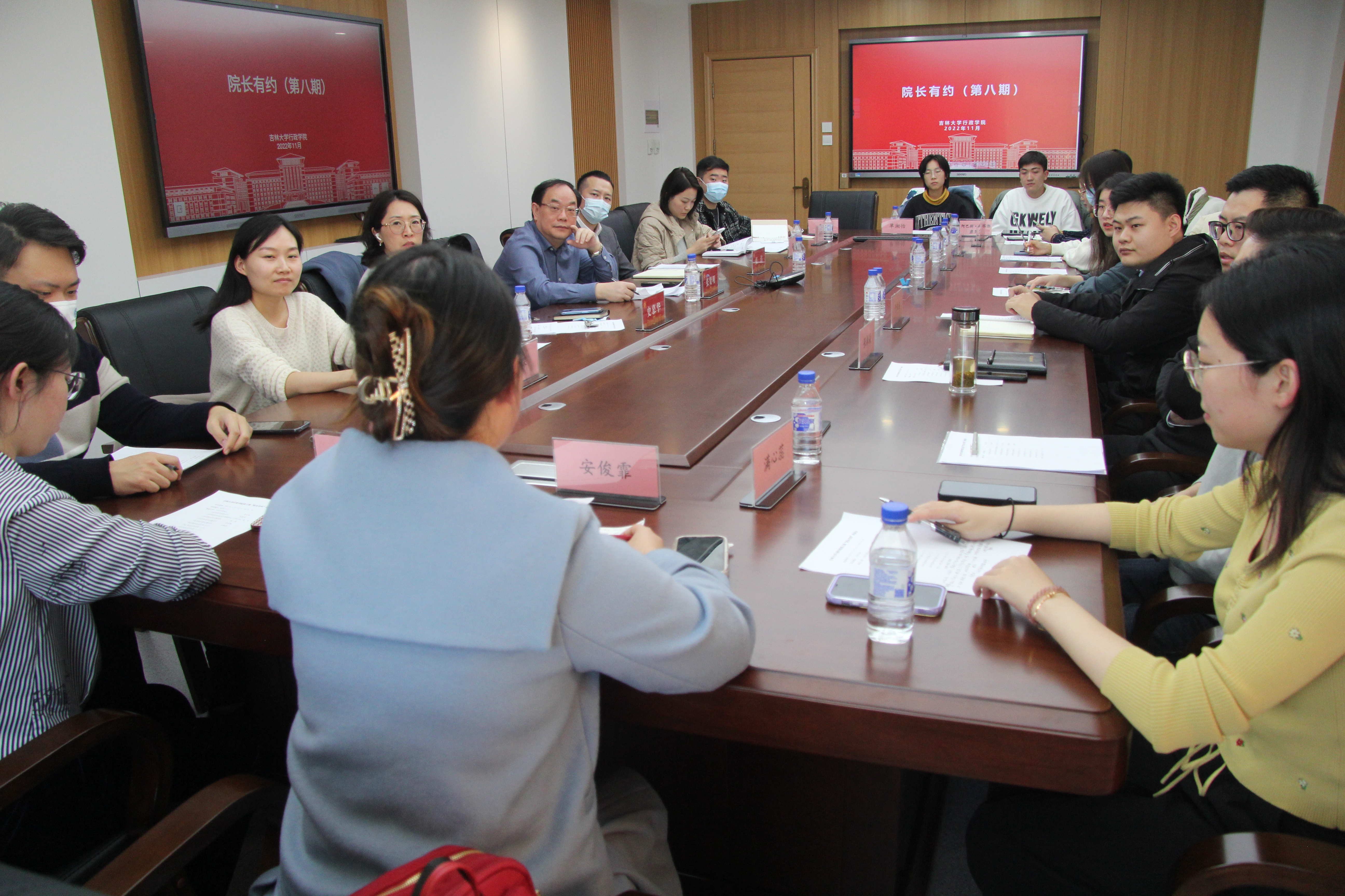史慕华勉励同学们惜时如金、慎思笃行,将院长语重心长的教诲化作不断前行的动力,向身边同学转达院长的期望与嘱托,并在今后将校园生活中收集到的同学们的意见建议随时向学院反映。整场会议轻松融洽,席间不时响起欢声笑语,师生在愉快的氛围中合影留念。
