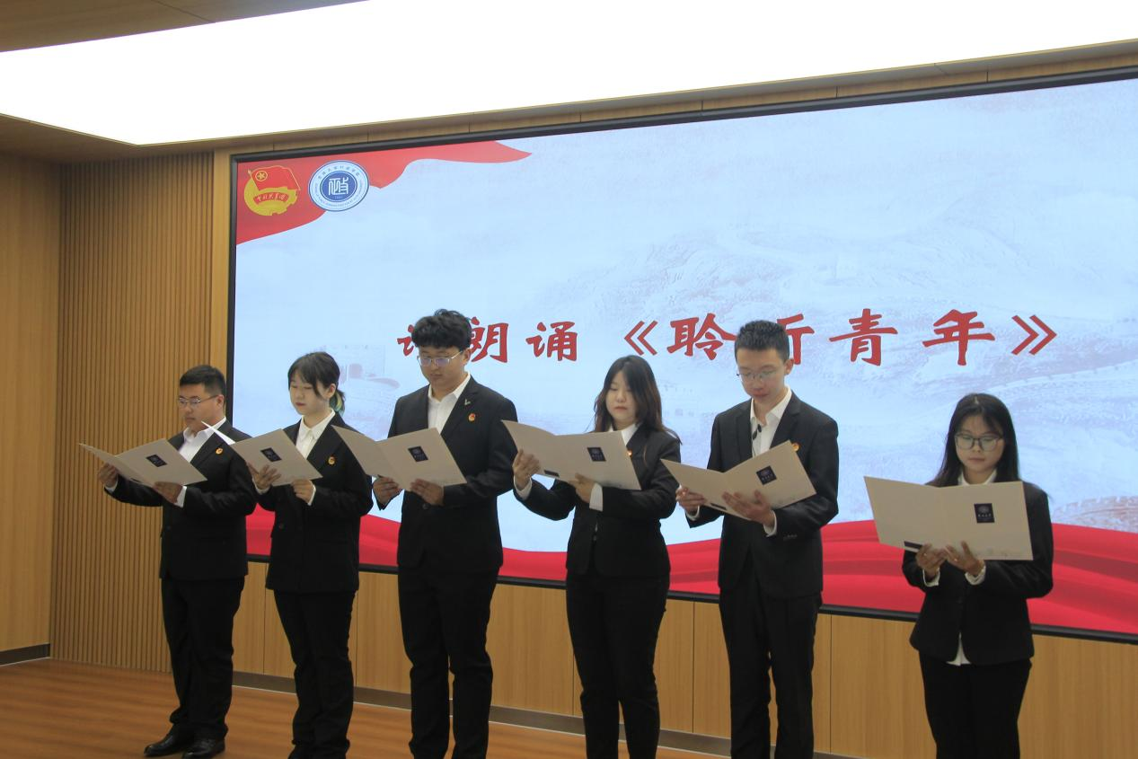 大会宣读了学院团委2022-2023学年“创先争优”表彰名单,授予5个先进团支部、56名优秀共青团员、23名优秀共青团干部、2名优秀学生记者荣誉称号。受表彰学生代表,2019级本科生于润泽等6名青年团员在大会现场朗诵组诗《聆听青年》,他们激扬澎湃的声音在会场回荡不绝,收获了来自参会人员的阵阵掌声。
