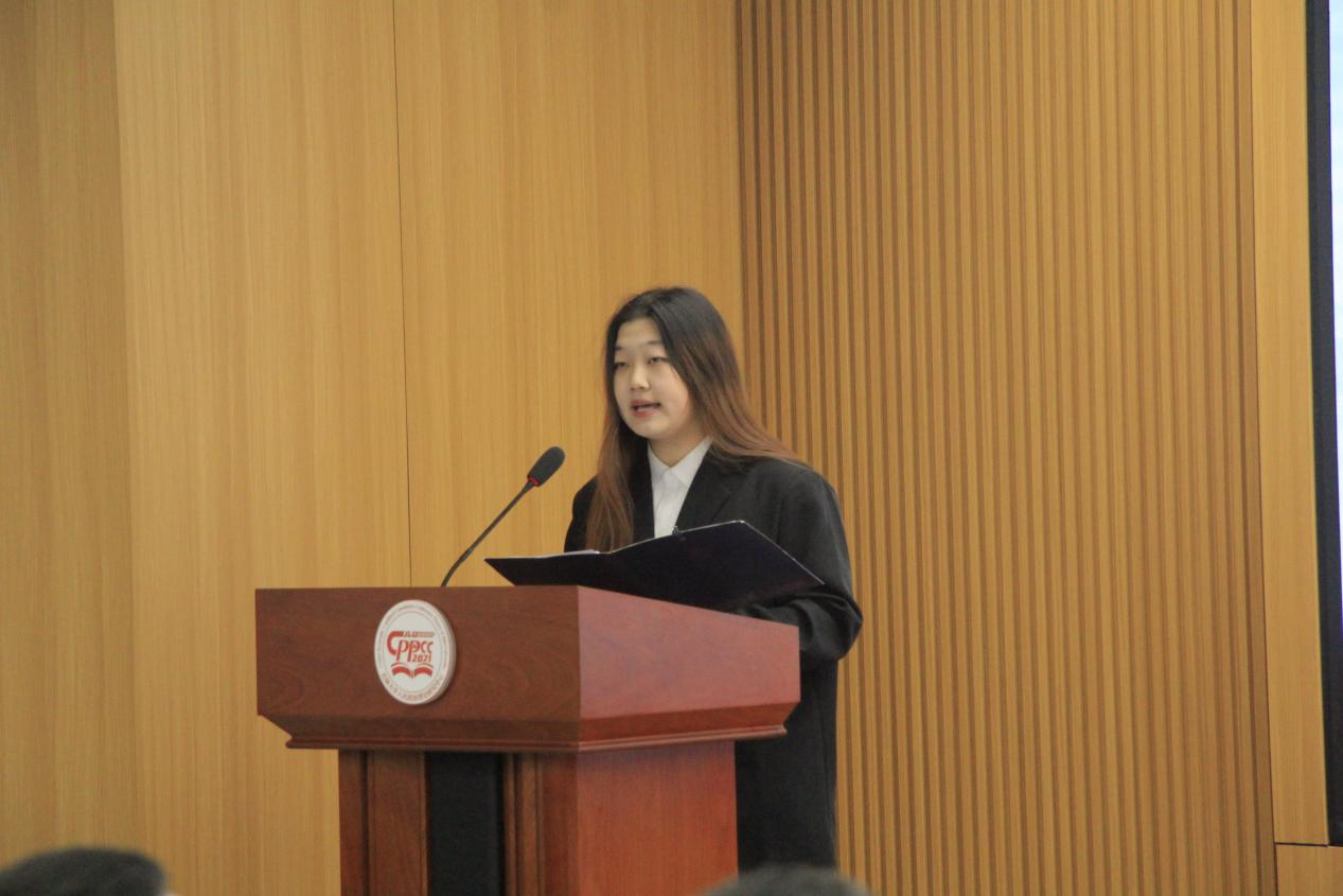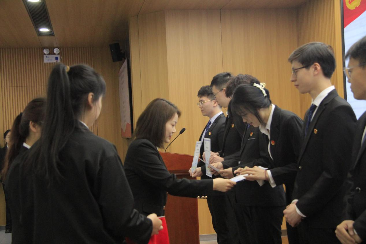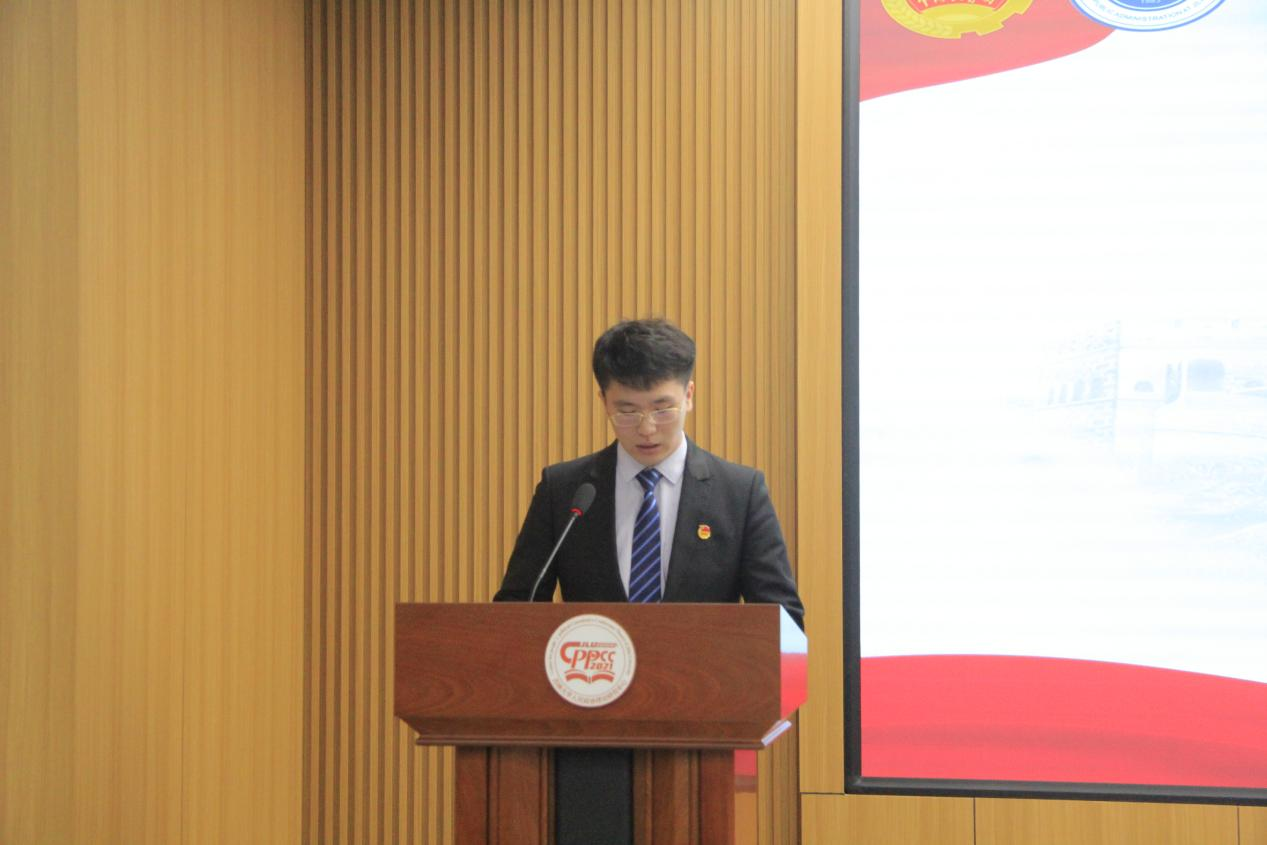 大会进行新发展团员入团仪式。仪式伊始,高卓嫱为三名新发展团员佩戴团徽。面对鲜艳的团旗,院团委副书记、2020级本科生陈佳妮带领大会全体团员庄严宣誓,雄浑的誓言与紧攥的右拳表达了学院青年团员为团组织增光添彩的豪迈激情。满运璋代表新发展团员做表态发言,他回顾了自己在团组织的教育和帮助下从一名普通青年成长为一名合格的共青团员的过程,表示自己将用实际行动践行入团初心、担当青年使命,努力成长为堪当民族复兴大任的时代新人。