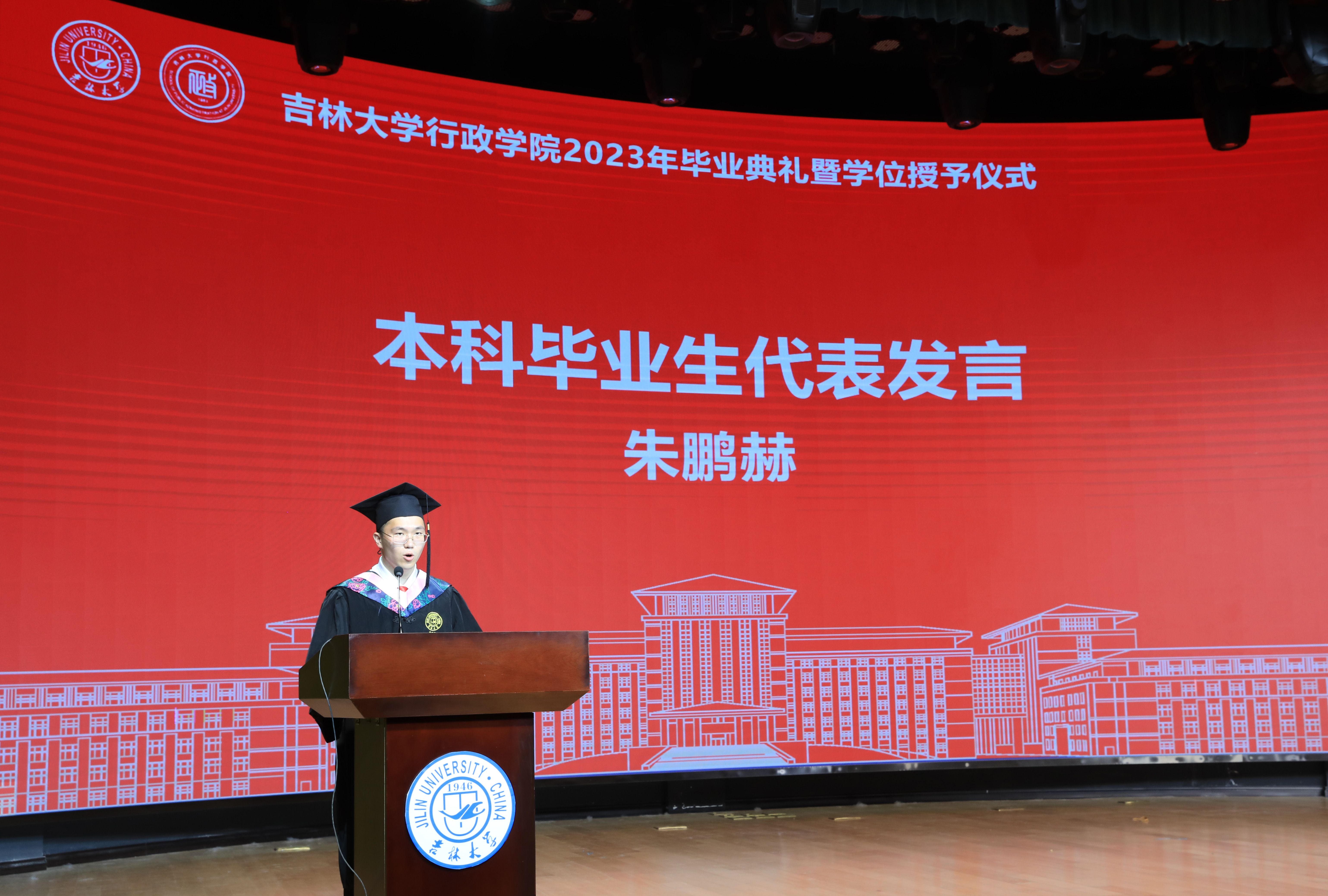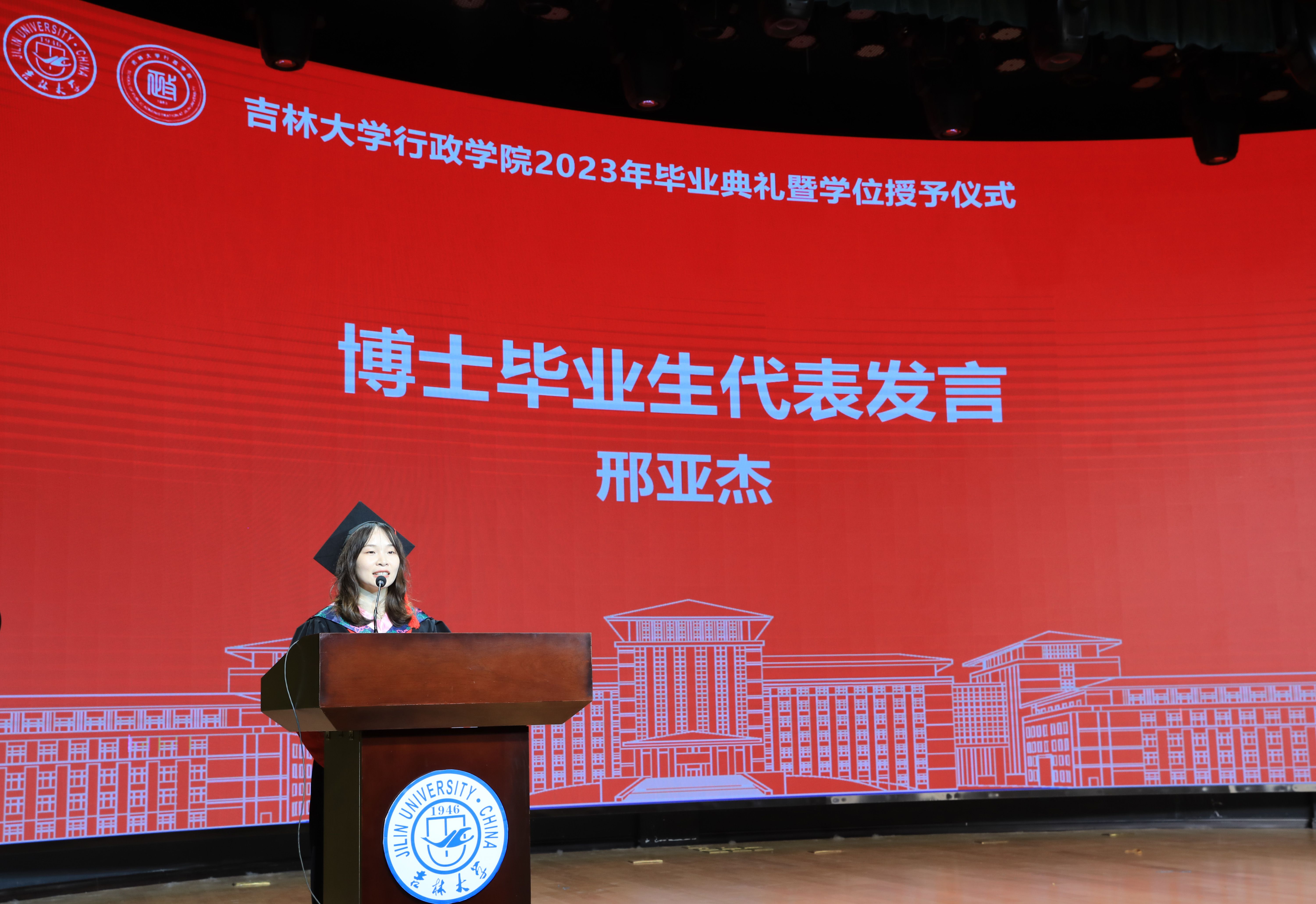 2020级国际政治专业邢亚杰代表毕业研究生发言。邢亚杰将自己与第二故乡的不解之缘娓娓道来,赞叹在吉大淬炼的十年青春,从数不尽的光阴故事里甄选出尝试与改变、理想与积累、坚守与传承的三个瞬间,致敬学院、老师、同学们给予的温暖和力量,把勇敢、忠诚、勤勉装进临别时踌躅满志的行囊。