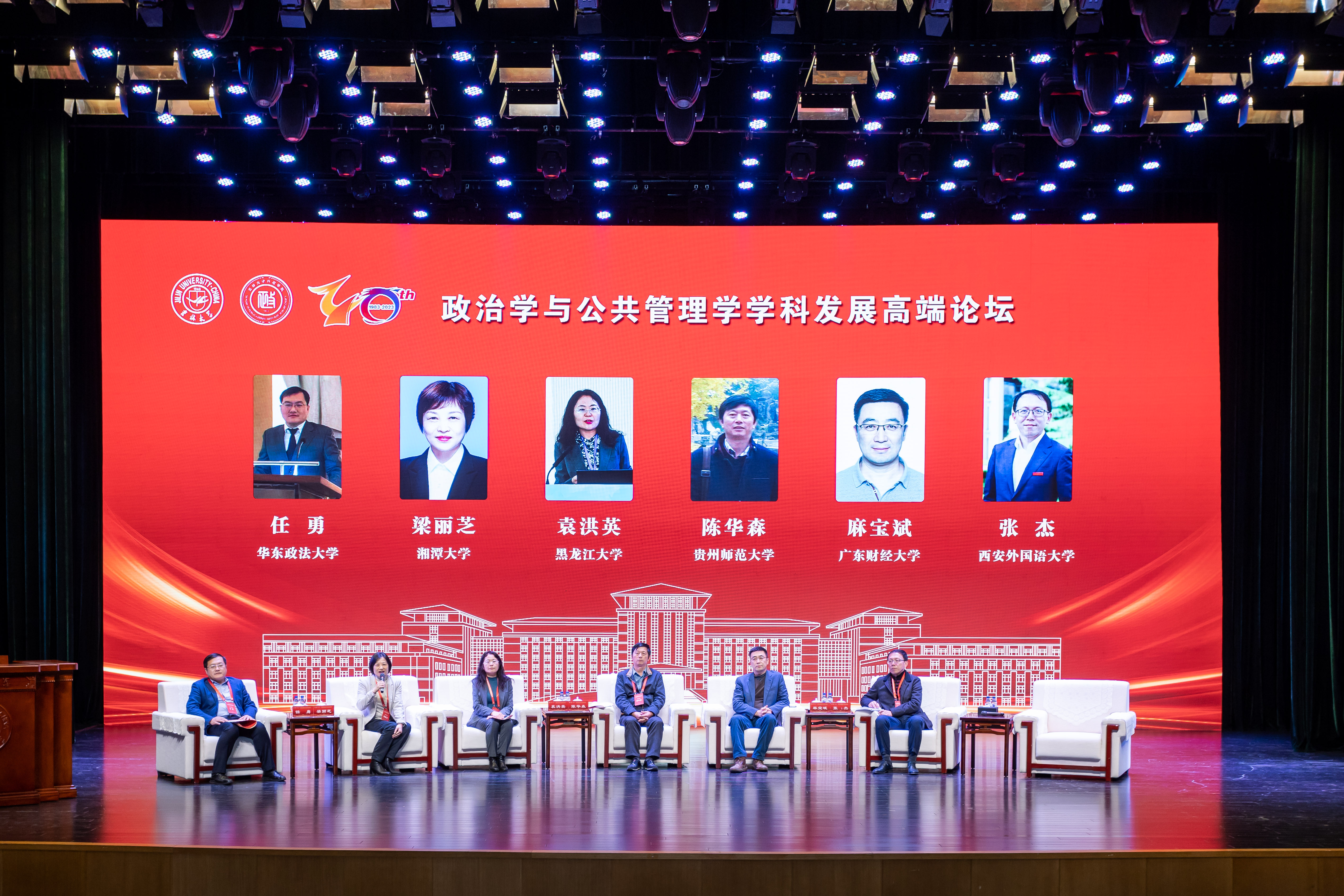 的渊源,并介绍了湘潭大学的基本情况。黑龙江大学政府管理学院院长袁洪英介绍了黑龙江大学公共管理学院的基本情况,分享了学院建设发展的宏伟目标。贵州师范大学历史与政治学院院长陈华森认为学科建设需要严格过程与产出导向、突出特色与关照全局、立足地方与服务国家、独立自主与开放发展、顶层设计与制度保障“五个结合”相结合。广东财经大学公共管理学院院长麻宝斌从人才培养的角度阐释“学习”的含义,包括学会学习、学会做事、学会生活、学会做人。西安外国语大学国际关系学院院长张杰介绍了西安外国语大学国际关系学院的特色,并指出学生要在主动学习能力、表达与沟通能力、团结协作能力、心态平和能力等方面加以提升。