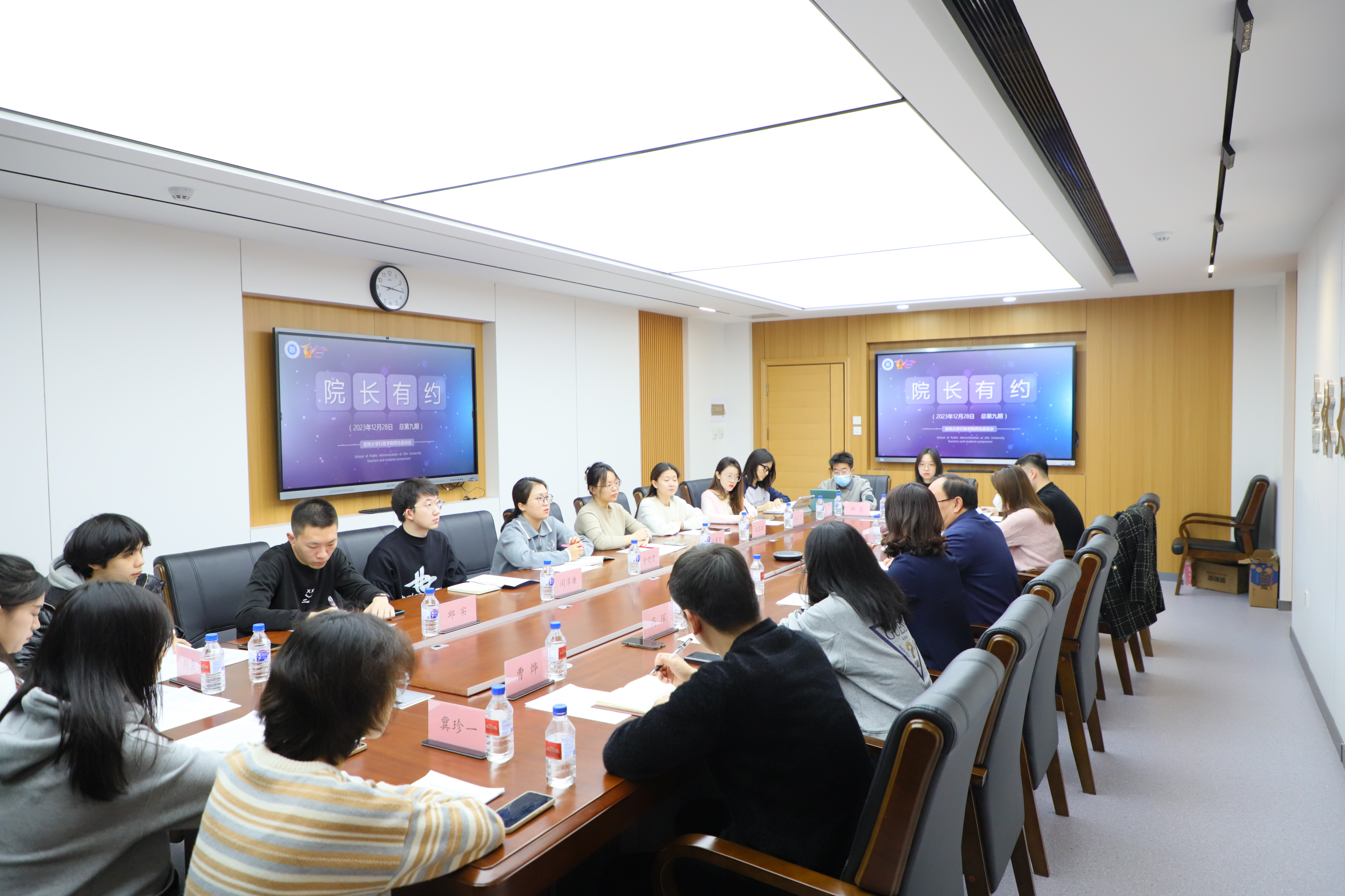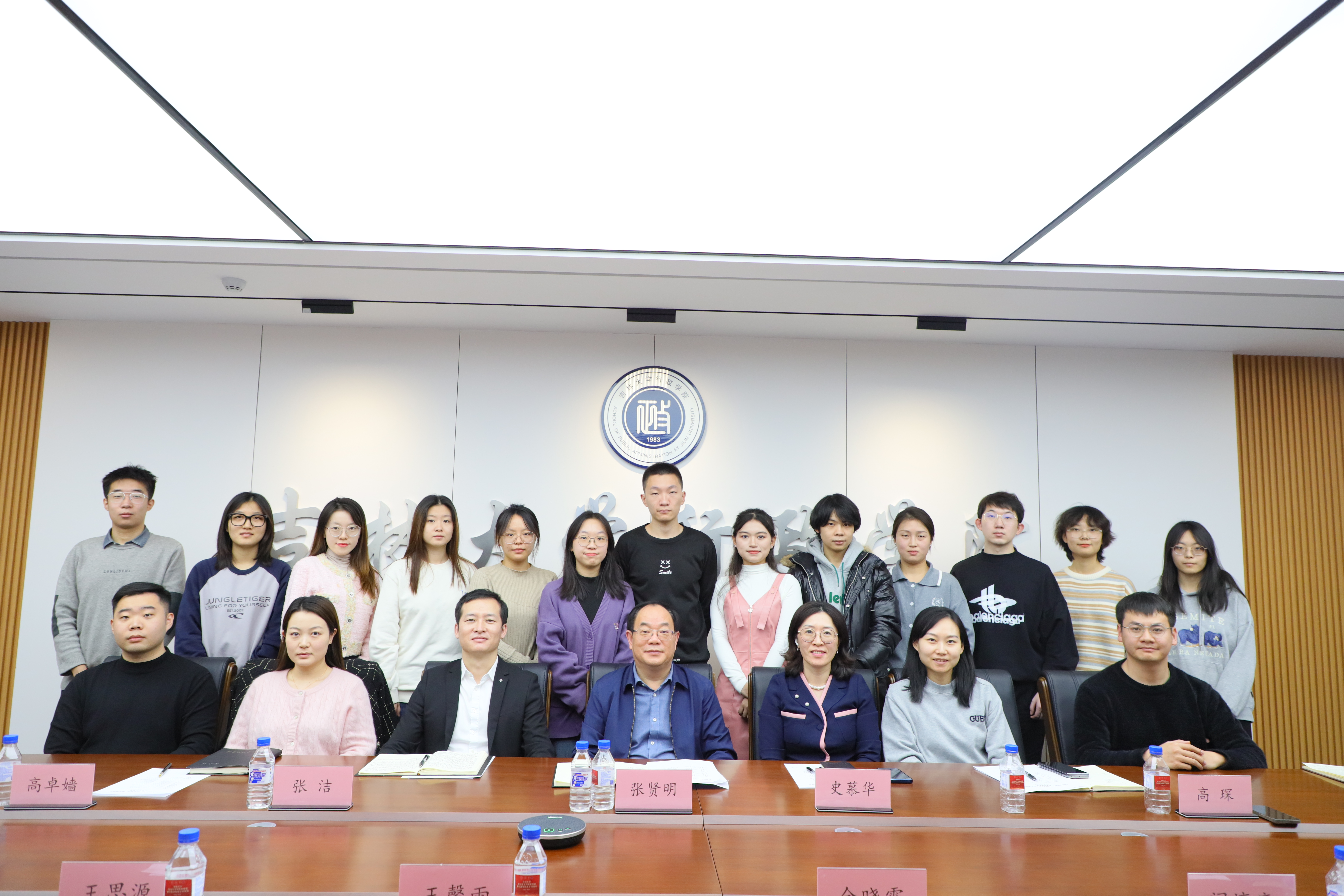 会议轻松融洽,席间不时响起欢声笑语,师生在愉快的氛围中合影留念。