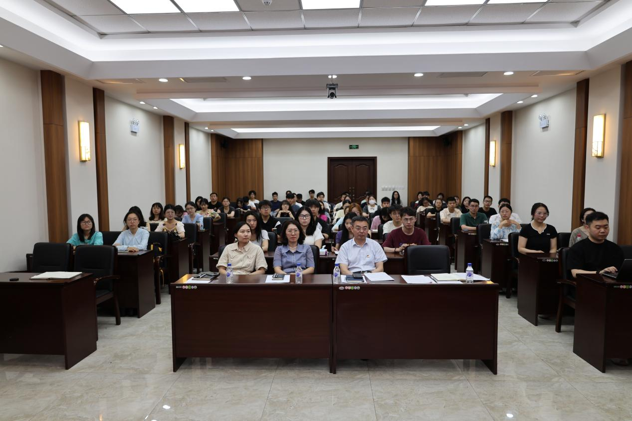 党委副书记兼副院长、纪委书记张洁主持党课。党委副书记史慕华,学生工作办公室、研究生工作办公室相关负责同志,本科生、研究生毕业生党员现场听课。