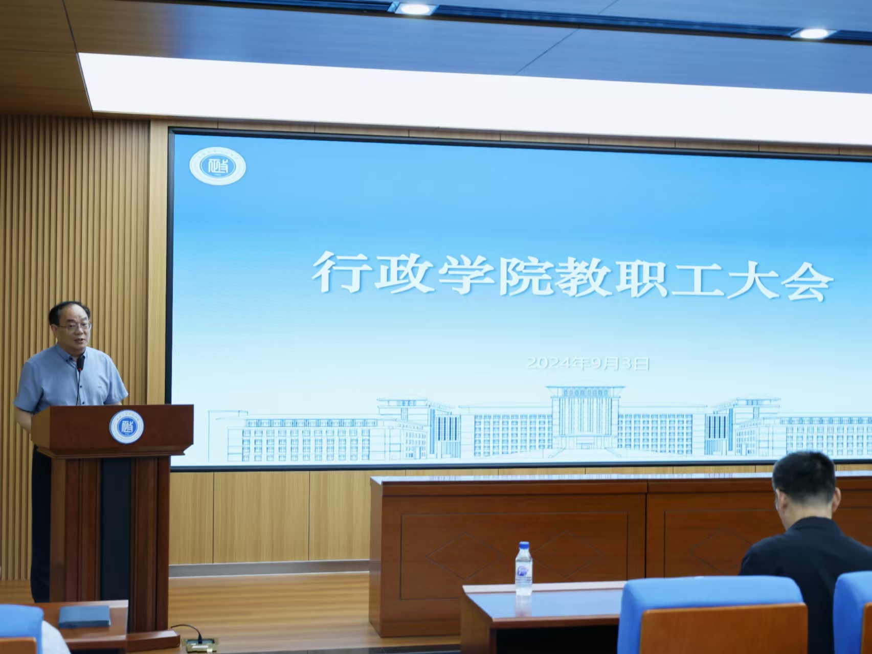 在东荣大厦B102报告厅召开2024年下半年全院教职工大会,院领导班子全体成员和全院教职工参加会议。会议由院长张贤明教授主持。