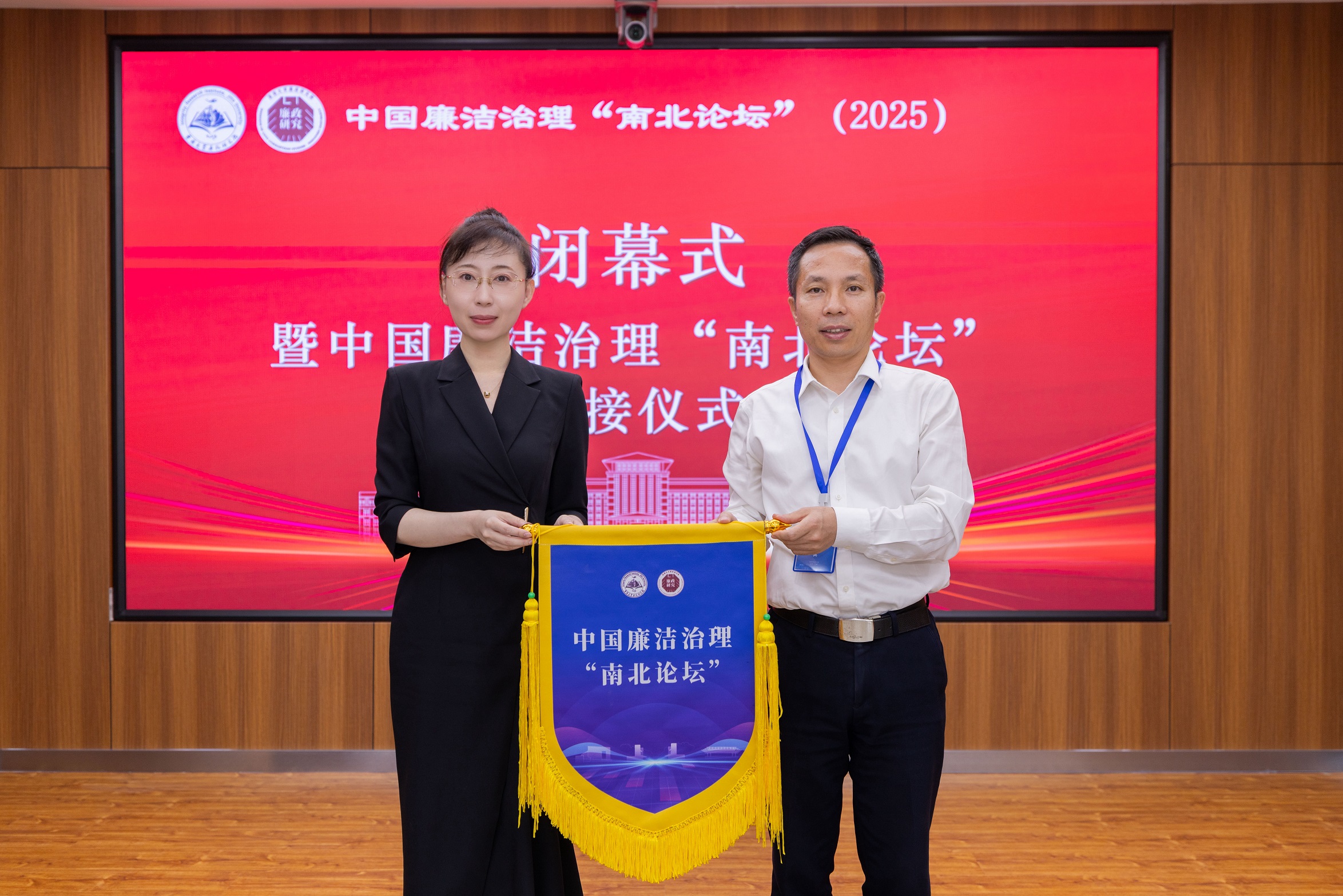 廉政研究院院长刘畅教授与深圳大学廉政研究院执行院长陈文教授进行了会议举办权的交接仪式,至此,中国廉洁治理“南北论坛”(2025)圆满结束。